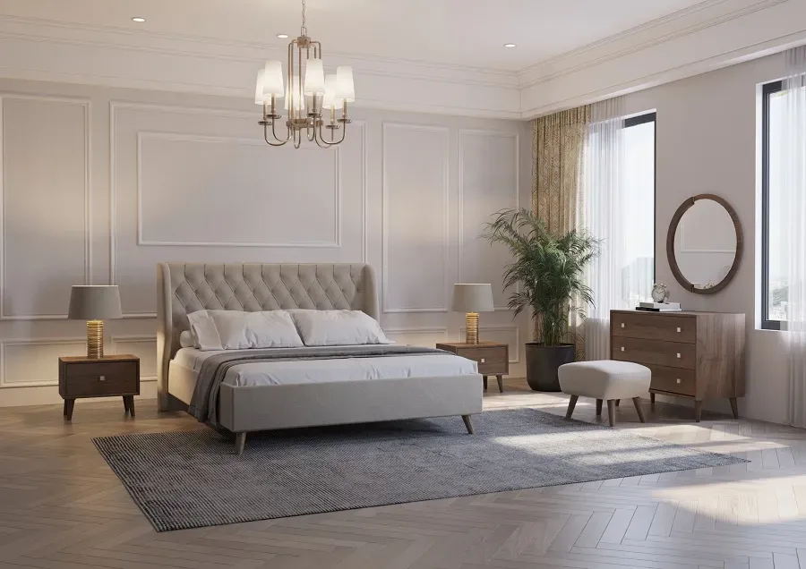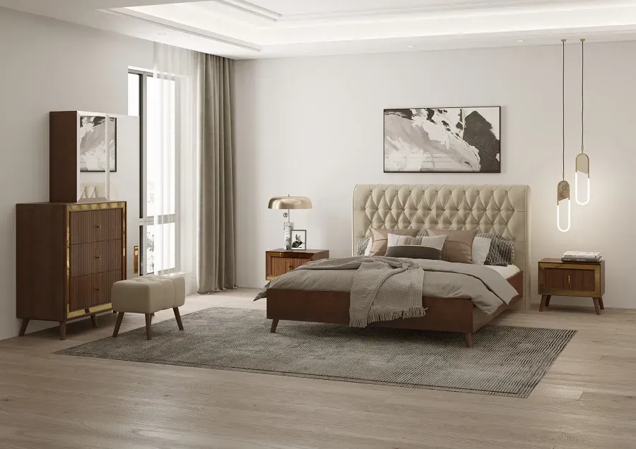 تتضمن فئة أطقم غرف النوم من نيلبرمجموعة متكاملة ومنسقة من منتجات النوم، صُممت جميعها مع التركيز على الجماليات والراحة وجودة التصنيع. تشمل هذه الأطقم: سرير، منضدة بجانب السرير مع أدراج، تسريحة، مرآة، ومقعد، لتوفر بيئة متجانسة وهادئة وعملية في غرفة نومك. في تصميم أطقم غرف النوم من نيلبر، يتم تطبيق الأساليب الحديثة وما بعد الحداثية مع الاهتمام بالتفاصيل والأشكال المتناسقة. استخدام مواد عالية الجودة مثل MDF مع الميلامين أو قشرة الخشب الطبيعية، وخشب متعدد الطبقات القوي، وقواعد من خشب الزان، يعزز من متانة وقوة وجاذبية المنتجات البصرية. تجمع رؤوس الأسرة بين الخشب والمواد اللينة مثل الإسفنج وألياف الفيسكوز، مما يضيف جمالية وراحة إضافية.