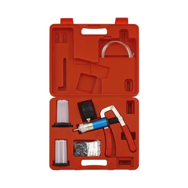 The handheld vacuum pump is a specialized tool used to create a vacuum in various parts of the car such as the brake system, vacuum control valves, and fuel delivery systems.