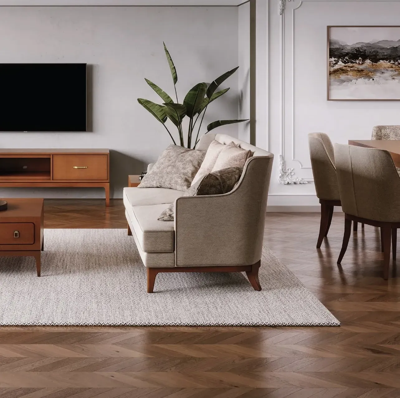 With its classic design heritage and modern perspective, the Akome furniture creates a pleasant and soothing atmosphere in the home. Its balanced structure with soft curves, robust construction from solid woods and natural veneer, protective polyurethane finish to preserve the wood color and look, and a comfortable seat made from cold foam and sponge have made it one of the most popular choices for contemporary homes. Superior craftsmanship, expert attention to joinery details, and strict adherence to ergonomic standards ensure that Akome is not only beautiful but also durable — a sofa crafted for years of comfort and elegance in your home.