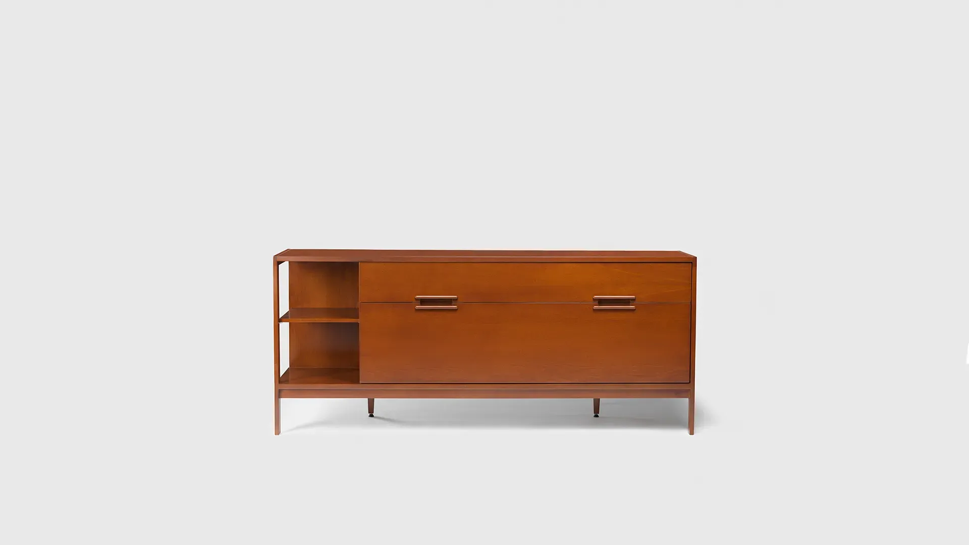The initial model of the Alder Buffet, with its simple design and light weight, is suitable for minimal and modern spaces. Its structure is made from natural wood with precise joinery and coated with polyurethane sealer and lacquer for high resistance to humidity and scratches. This model creates a warm, natural vibe, and its stylish, durable look makes it an excellent choice for today’s homes.