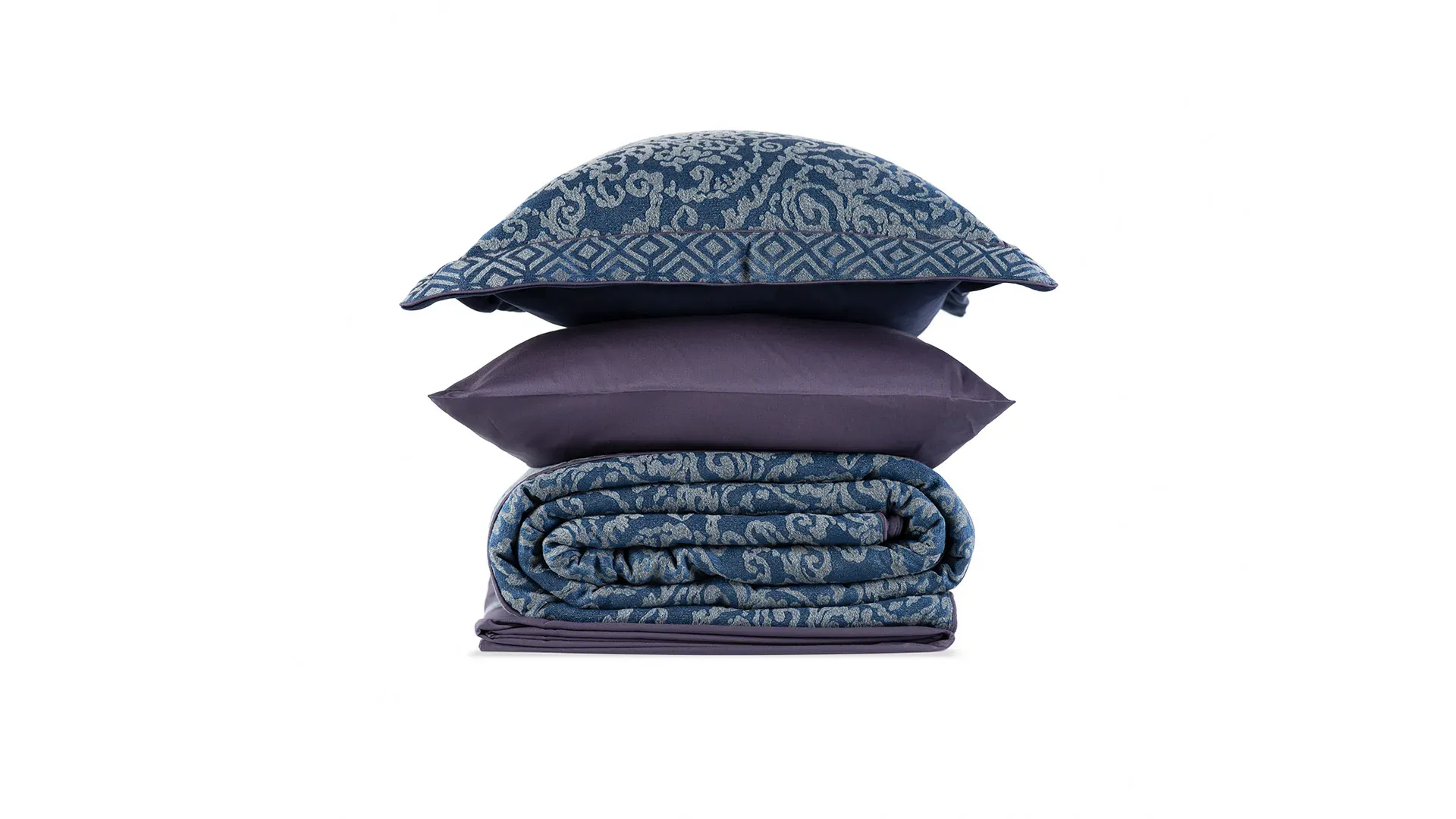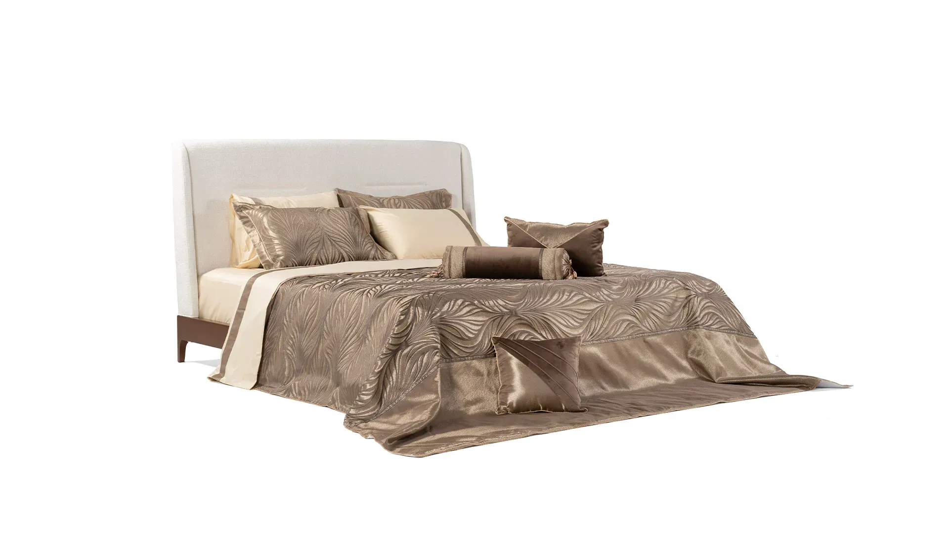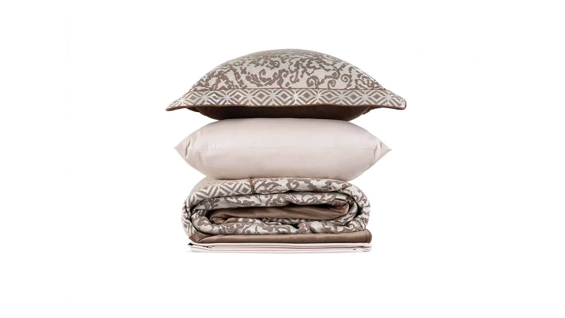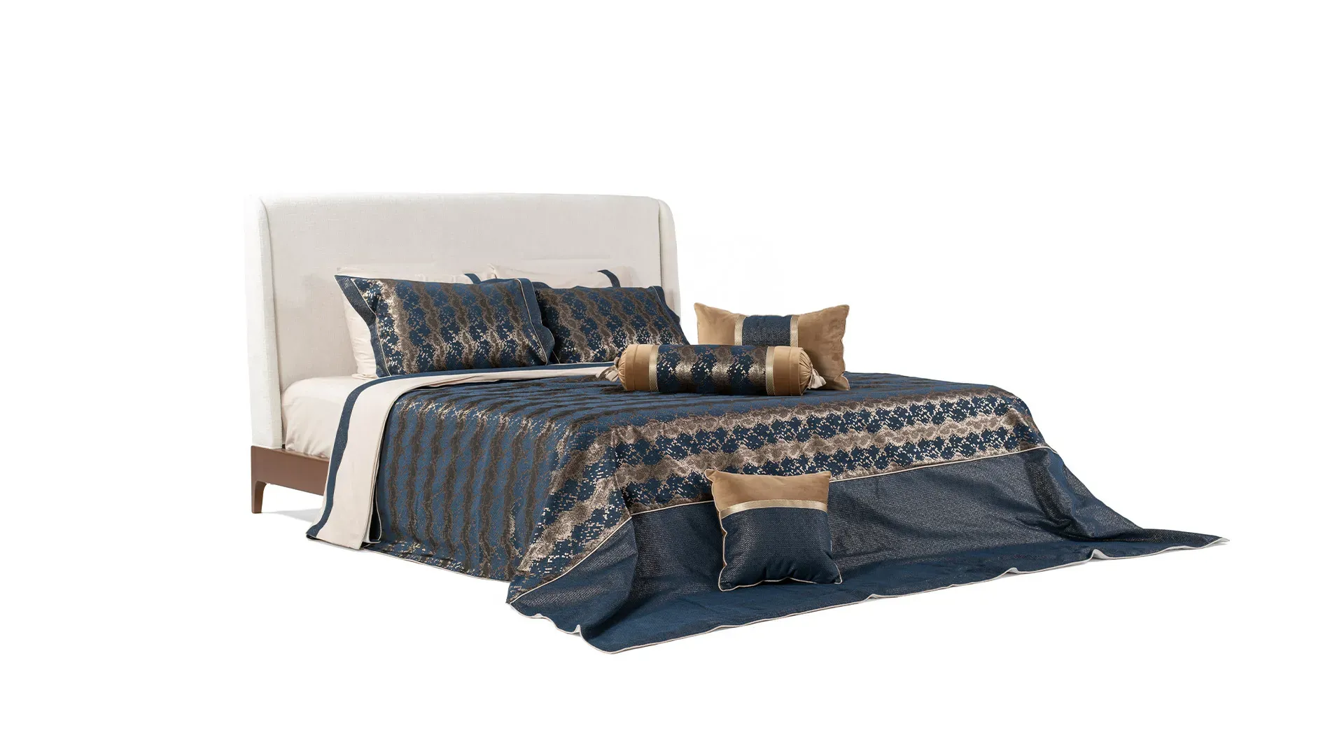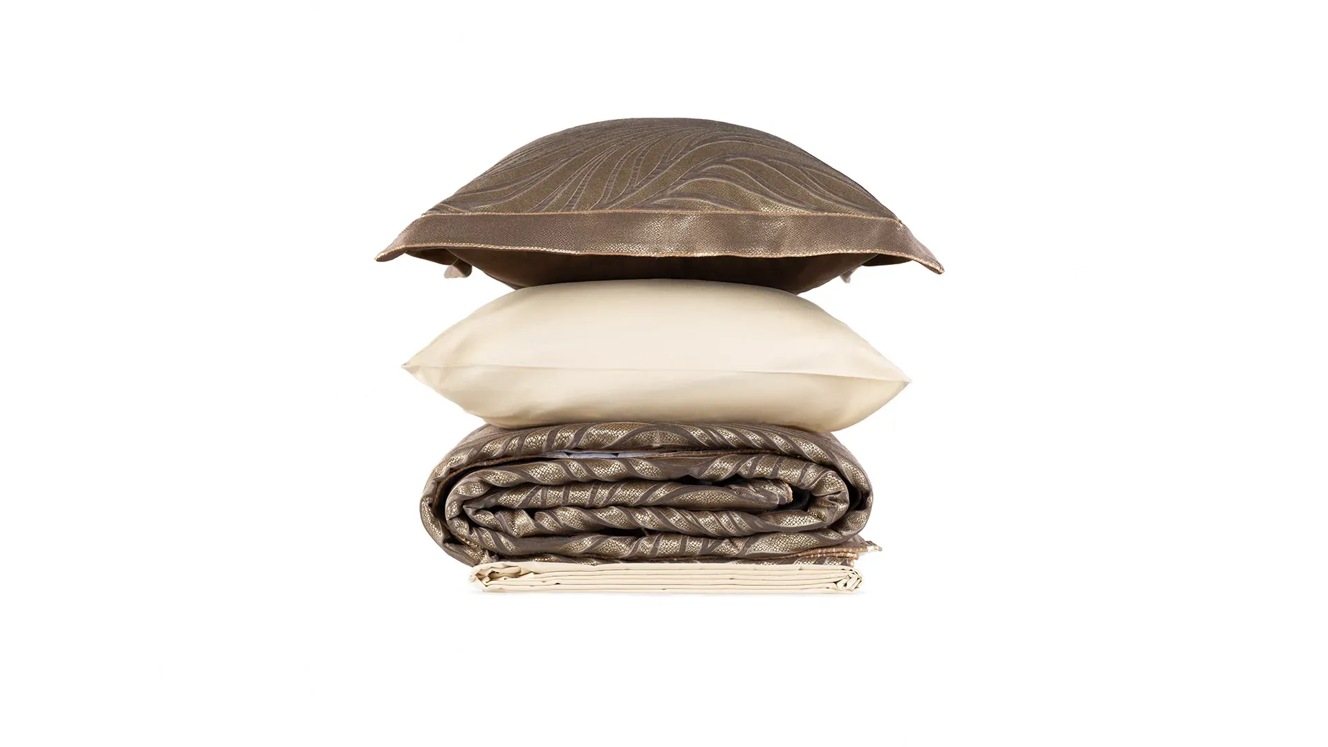The DecoMaria bedding set, with its luxurious design and natural materials, creates an attractive, tranquil ambiance in the bedroom. The raised 100% cotton jacquard fabric, with its soft, breathable texture, adds a sense of smoothness and comfort, alongside a refined, elegant look to your sleep. This ten-piece set is designed to ensure complete harmony between the components and to create a serene setting for your nightly rest.