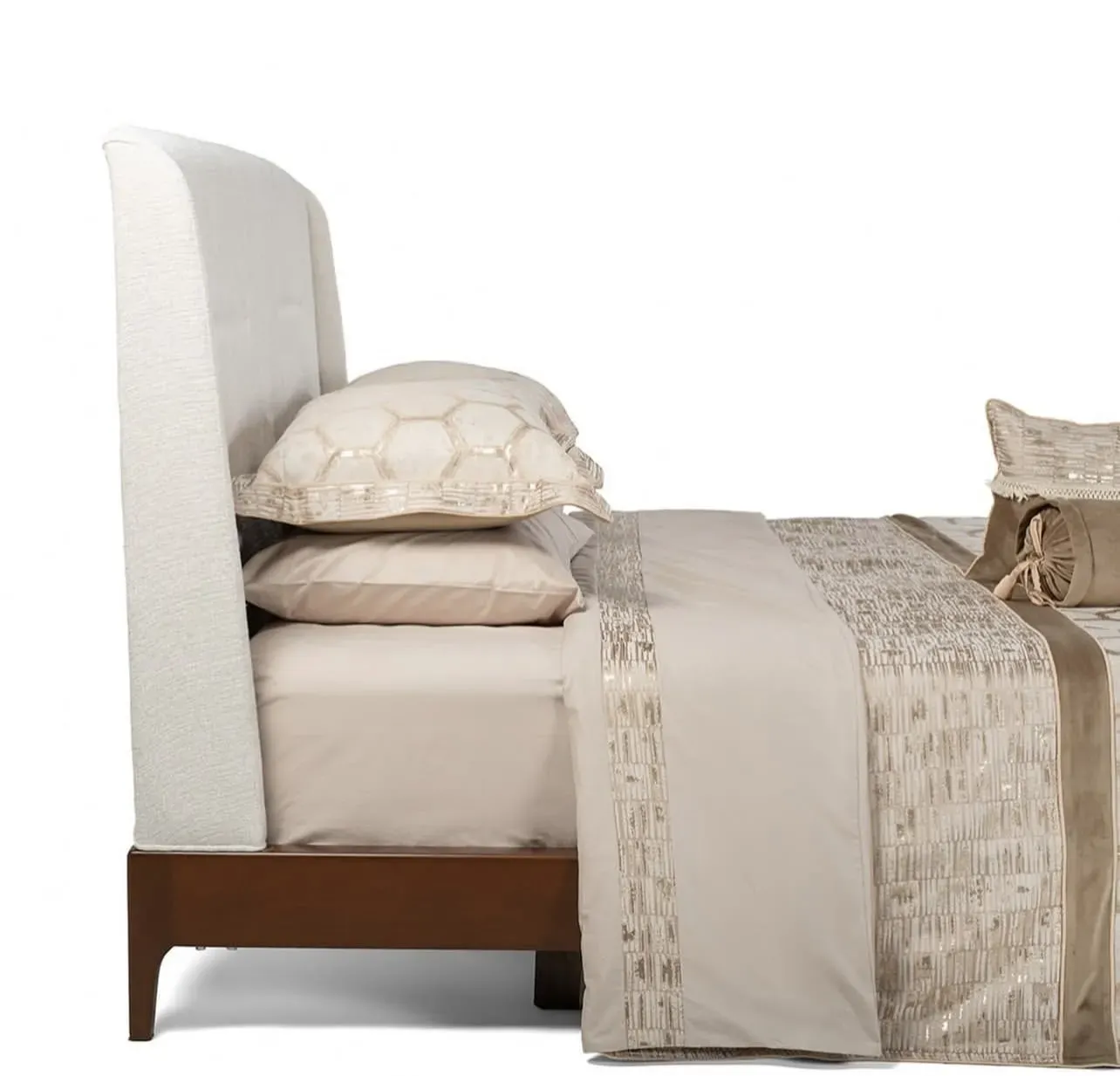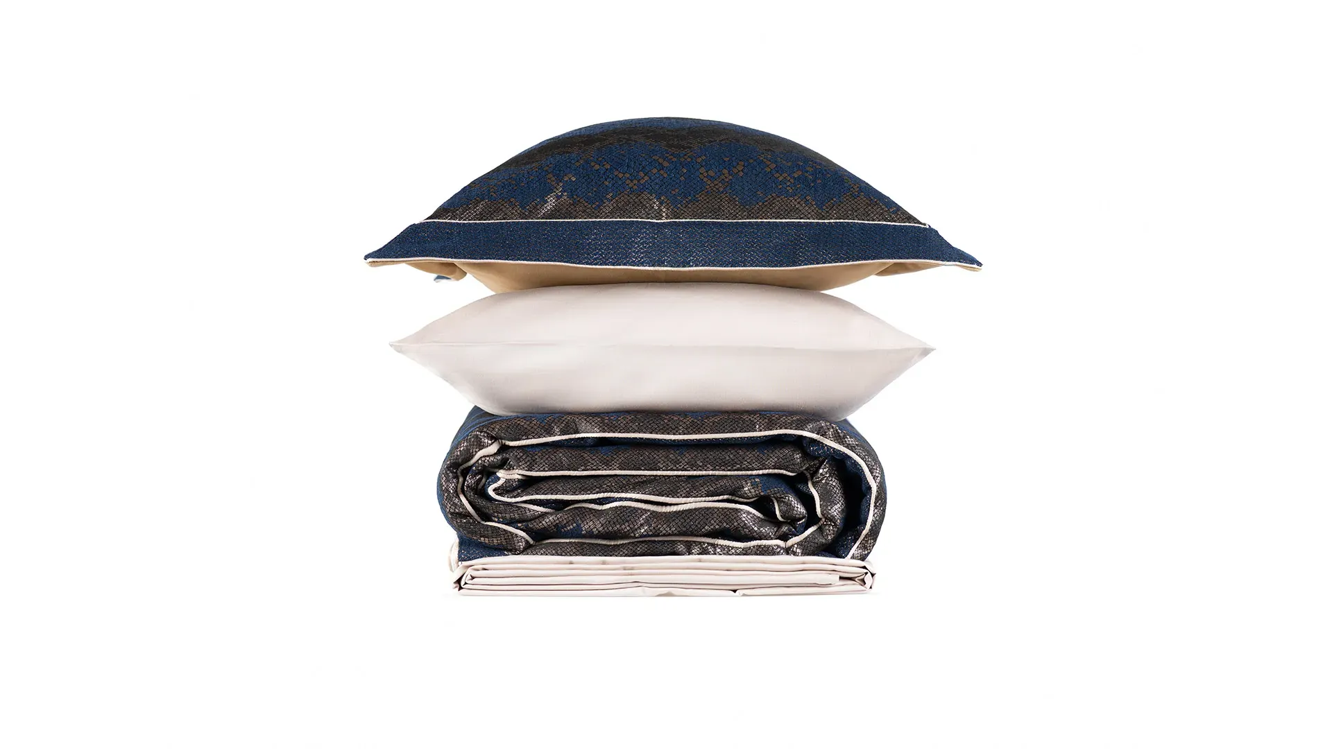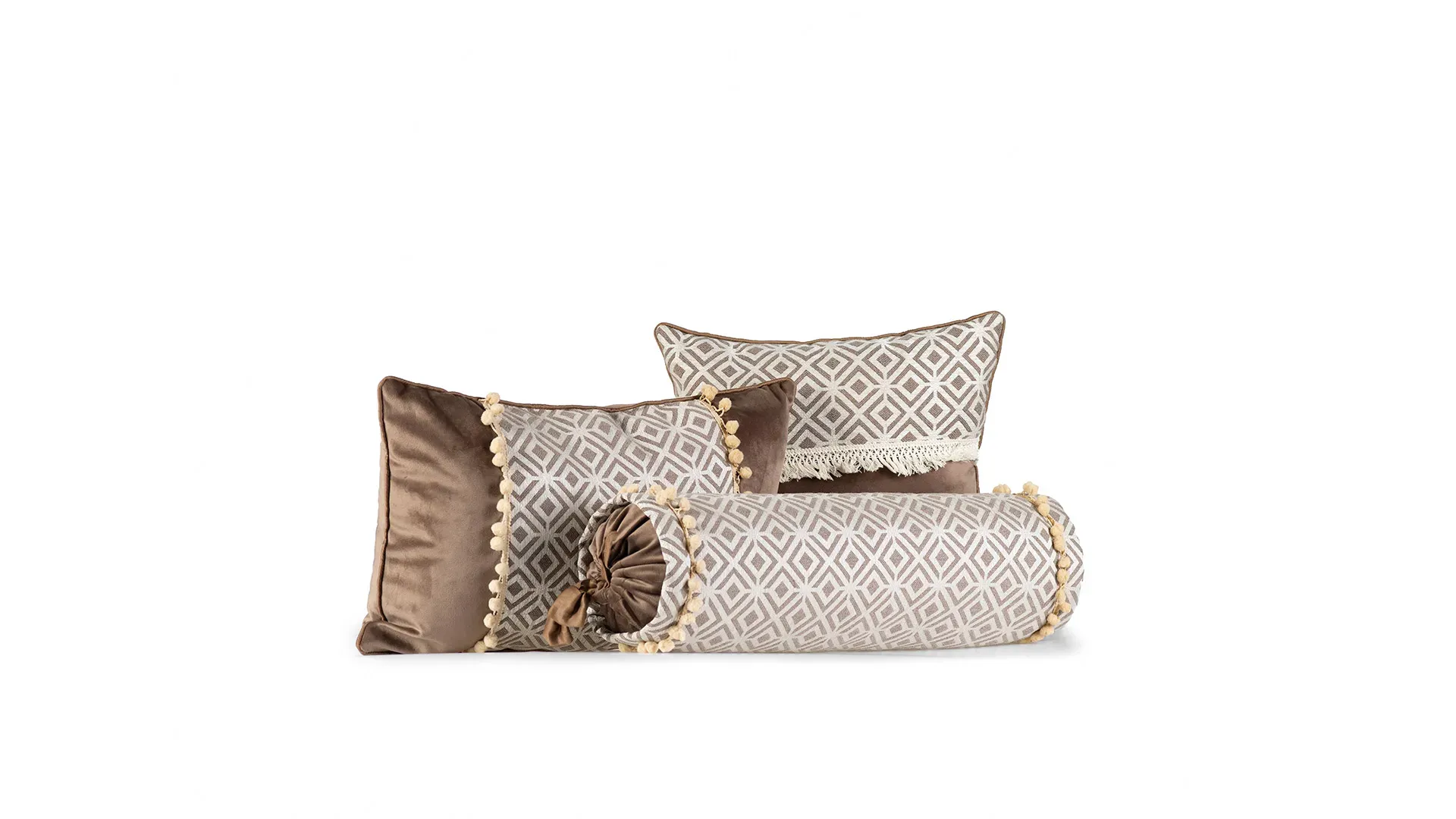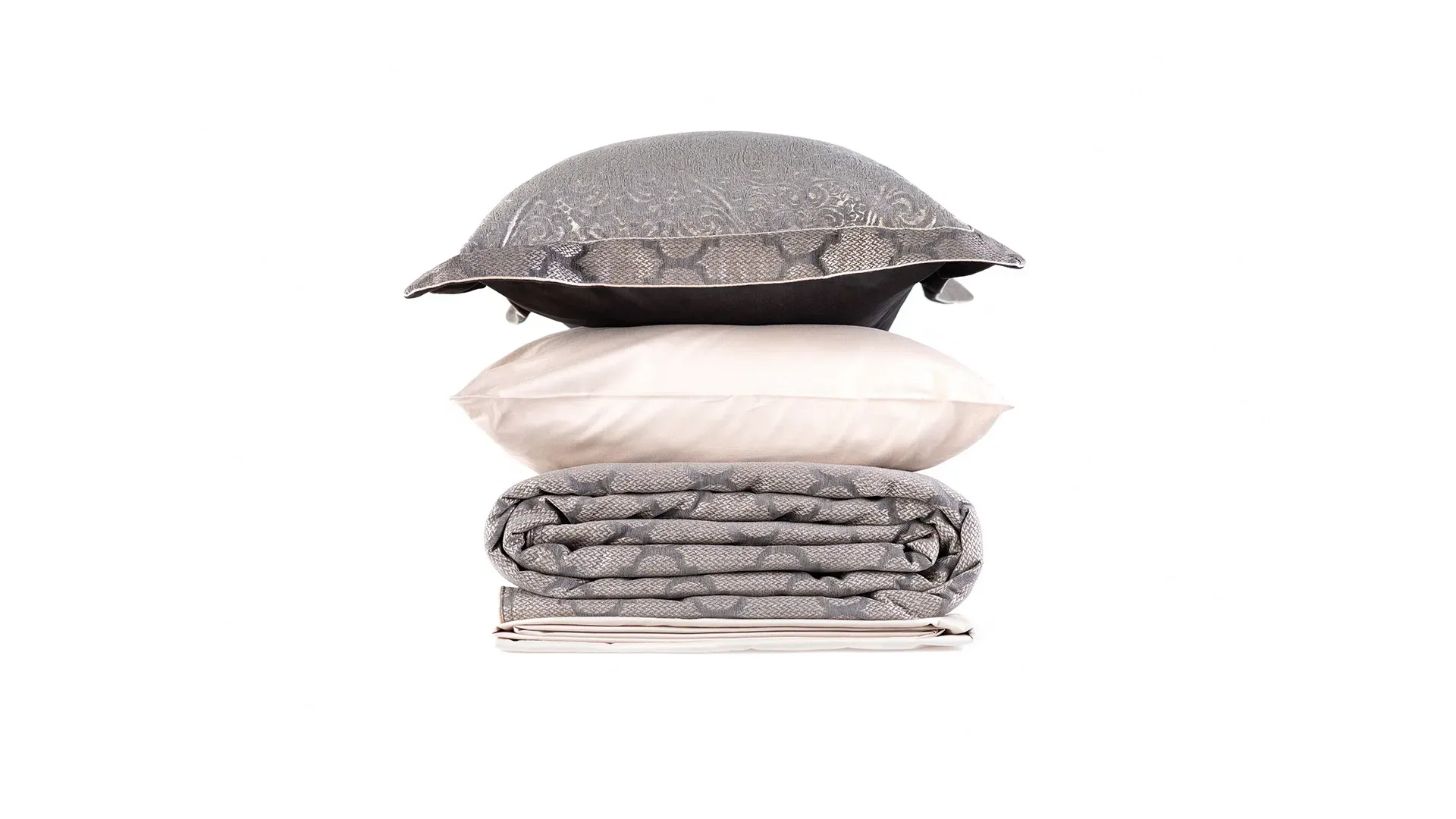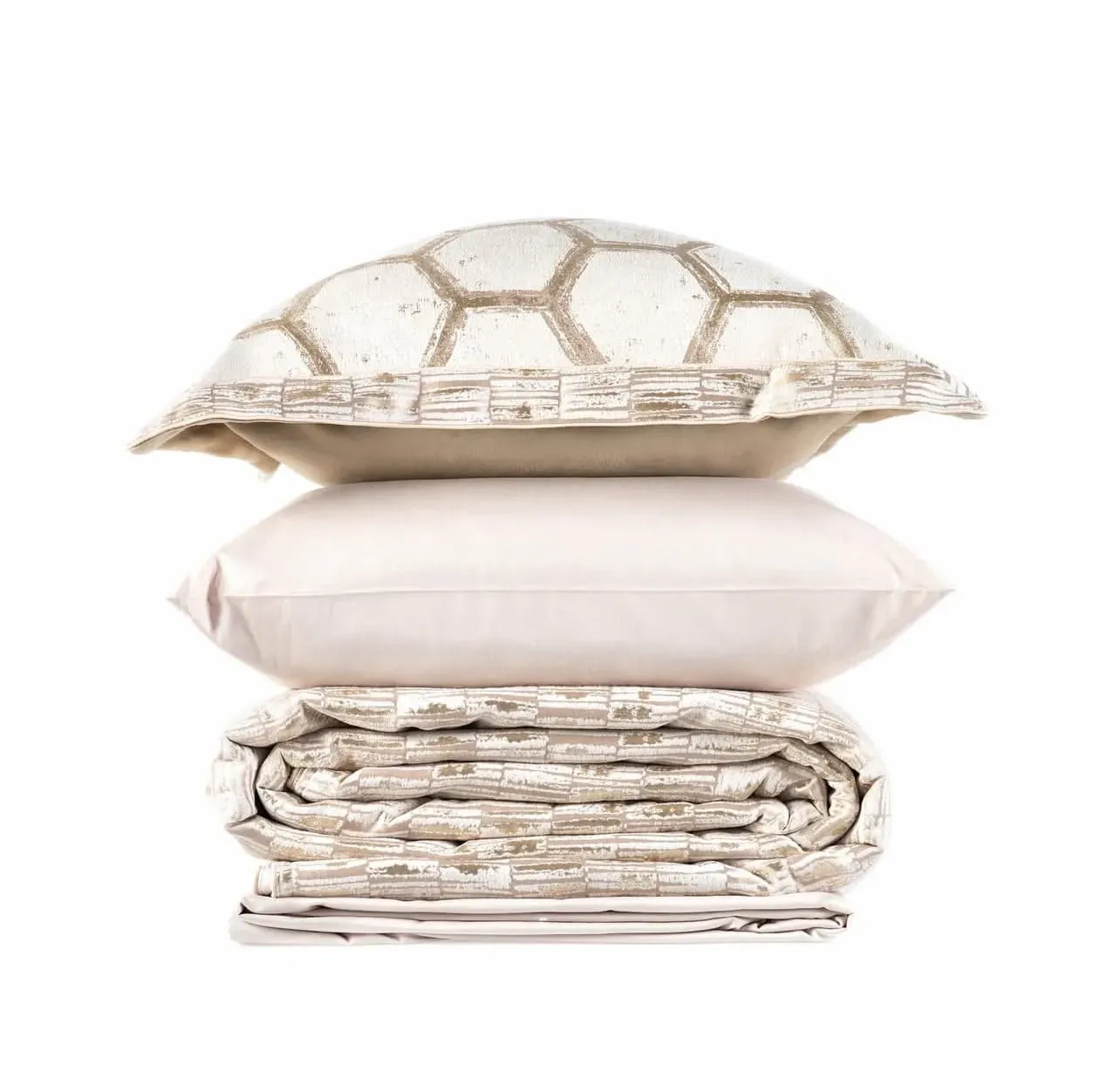 The DecoMaria bedding set, with its luxurious design and natural materials, creates an attractive, tranquil ambiance in the bedroom. The raised 100% cotton jacquard fabric, with its soft, breathable texture, adds a sense of smoothness and comfort, alongside a refined, elegant look to your sleep. This ten-piece set is designed to ensure complete harmony between the components and to create a serene setting for your nightly rest.