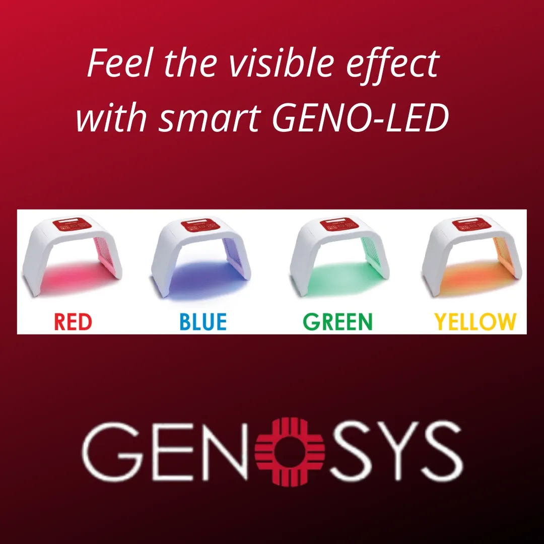 GENO-LED ئامێرێکی تایبەتمەندە بۆ چارەسەری فۆتۆ (Low Level LED Light) کە 287 LED ی ژێر سووری تایبەت بەکاردەهێنێت , درێژیی شەپۆلی جۆراوجۆر لە مەودای 423 بۆ 640 نانۆمەتردا دەردەدات. ئەم تەکنەلۆژیایە یارمەتی دووبارە دروستکردنەوەی پێست دەدات و هەوکردنەکان ئارام دەکاتەوە و کێشەکانی پێست چارەسەر دەکات و- بە پێچەوانەی لەیزەرە تەقلیدییەکانەوە- بەبێ هیچ ئازارێک، گەرمایەک، یان زیانێکی پیربوونی فۆتۆ کاردەکات.