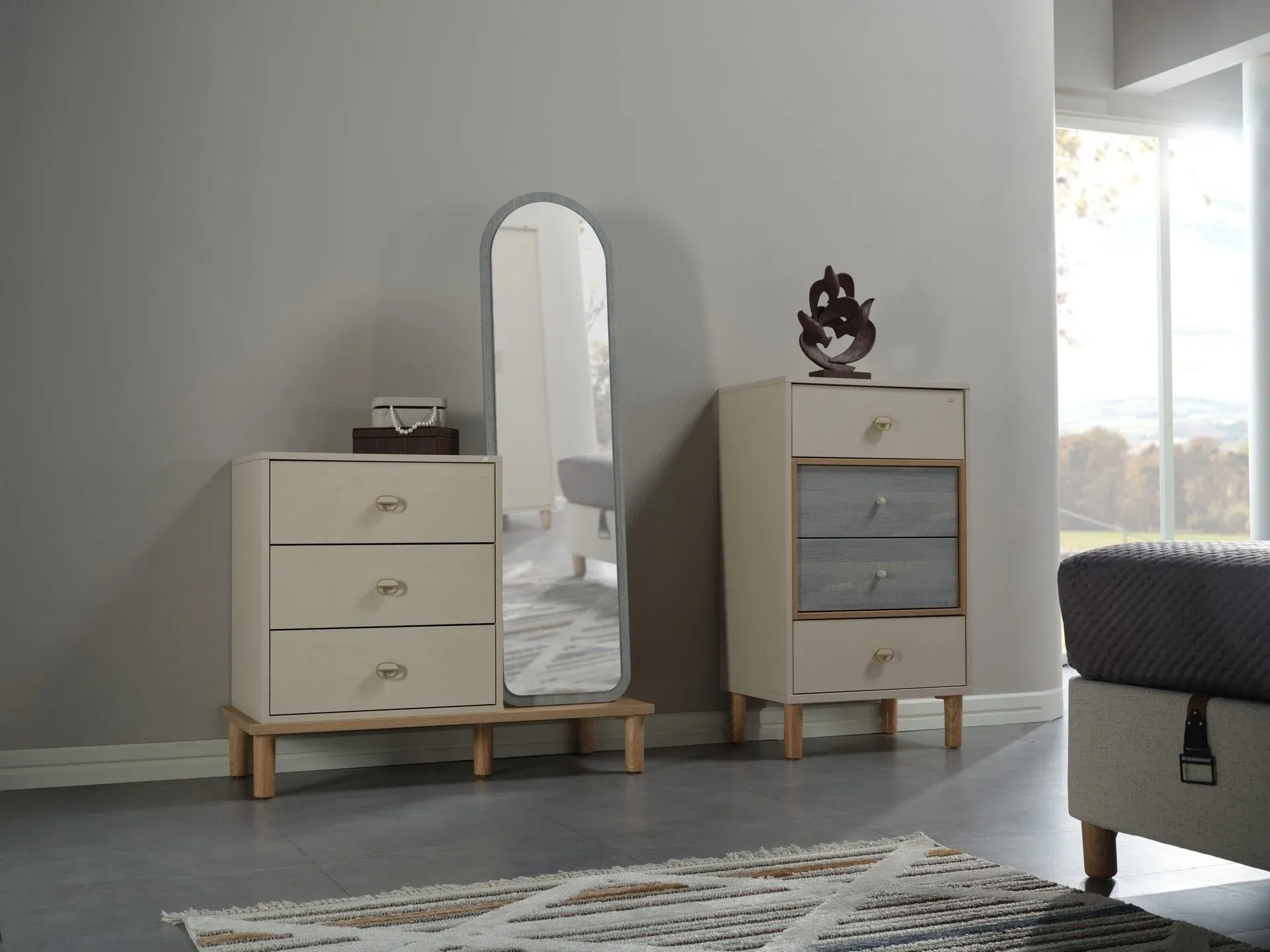 کۆمەڵەی ژووری نووستنەکانمان تێکەڵەیەک لە ڕەنگینیی و کارایی پێشکەش دەکەن، کە بۆ دروستکردنی شوێنێکی ئارام بۆ پشوودان دیزاین کراون. جا چ بە دوای دیزاینی مۆدێرن و مینیمالیستیدا بگەڕێن یان پارچەی کلاسیک و هەمیشەیی، ئیستیکبال بە پێ سەروسەلیقەی ئێوە بژاردەی جۆراوجۆر پێشکەش دەکات. تەختەخەو و دوڵابی جلوبەرگ و مێزی تەنیشت تەختەخەوەکانمان بە کەرەستەی کوالیتیبەرز دروست کراون بۆ ئەوەی مانەوە و ئاسوودەیی گەرەنتی بکەن و فەزای کۆگاکردن یارمەتیدەرتان دەبن لە ڕێکخستن و ڕێکوپێکیی ژوورەکەتان. بە مۆبیلیاتی جوانی ئیستیکبال کە هاوسەنگی و جوانی دەهێنێتە ناو ماڵەکانتان ژووری نووستنەکەتان بگۆڕن بۆ خەڵوەتگەیەکی ئارامبەخش.