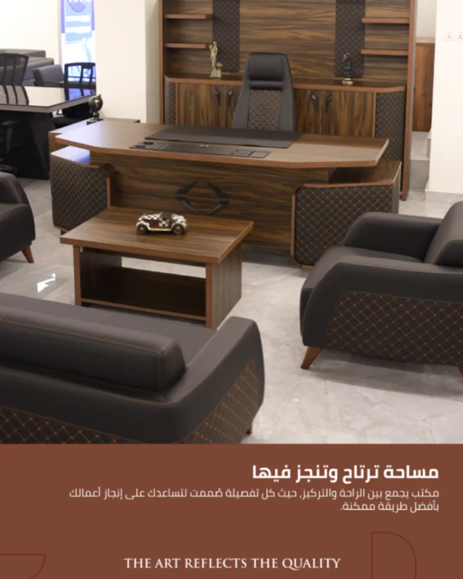 لە مۆبیلیاتی جوان باوەڕمان وایە کەشی کارەکەتان دەبێت زیاتر بێت لە نووسینگەیەکی سادە؛ ئەم کەشە دەبێت ئیلهامبەخشی ئێوە بێت. کۆتا کۆمەڵەی بەڕێوەبەریمان بە وردی بۆ سەرۆکێکی مۆدێرن دیزاین کراوە کە هەم گرنگی بە ستایل دەدات و هەم بە کارایی.