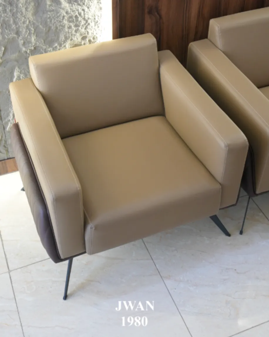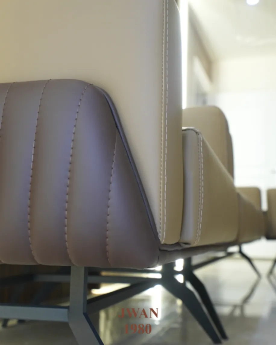 جوانکاری مۆدێرن لە جوان شاکارێکە لە دیزاینی هاوچەرخ کە بە تێکەڵکردنی چەرمی دوو ڕەنگی کرێم و مۆکا، دەرکەوتەیەکی لوکس و سەرنجڕاکێش دروست دەکات. دروومانە ستوونییە وردەکان و قاچە کانزاییە ڕەشەکانی بە دیزاینی تەلارسازی، دیمەنێکی مینیماڵ و سووک بە م سێتە دەبەخشێت؛ هەڵبژاردەیەکی ئایدیاڵە بۆ نووسینگە مۆدێرنەکان لەگەڵ بینینێکی داهاتووگەرایانە.