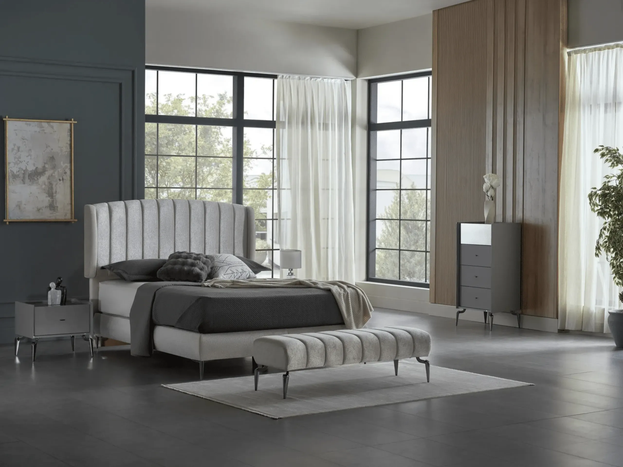 ئەم سێتی ژووری نووستنانە، مۆبیلیاتێکی کەشخە و ڕێکوپێکن کە بۆ دروستکردنی کەشێکی ئاسوودە و مۆدێرن بۆ نووستن دیزاین کراون. هەریەک لە سێتەکان بە تێکەڵەیەکی هاوسەنگ لە ناسکی و پراکتیکیبوون، بۆ سەروسەلیقە جیاوازەکان دروست کراوە و ئاسوودەیی ڕۆژانە، ڕکوپێکیی هۆشمەندانە و ڕواڵەتێکی کەشخە و یەکگرتوو فەراهەم دەکەن. ئەم سێتانە بریتین لە: