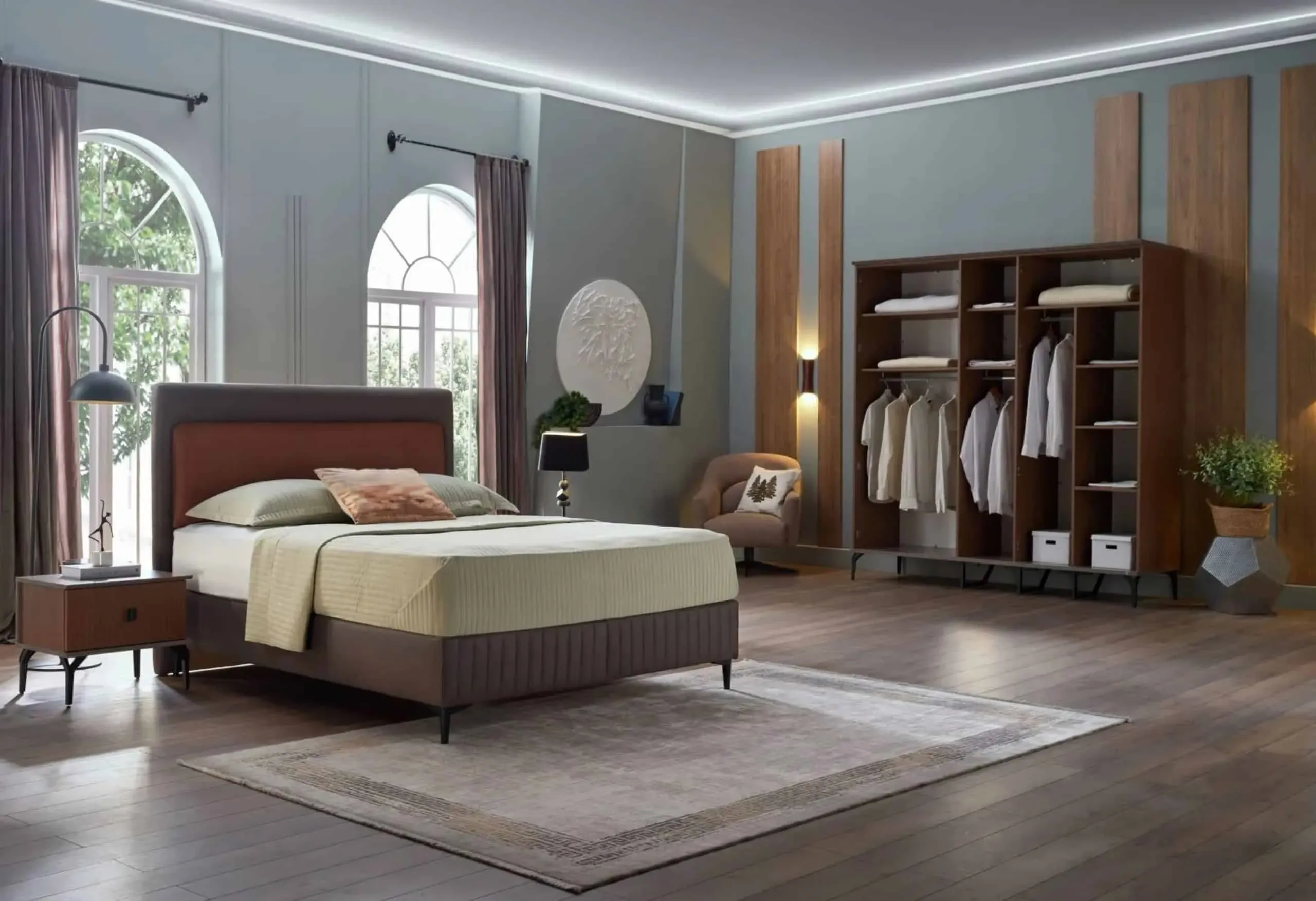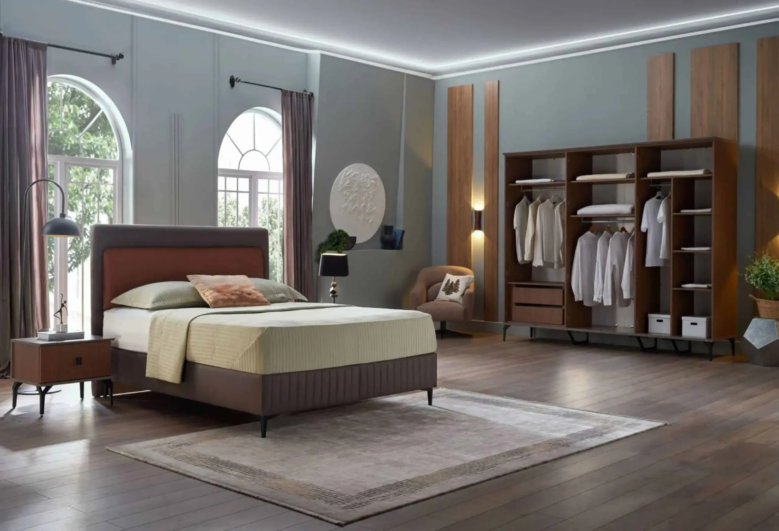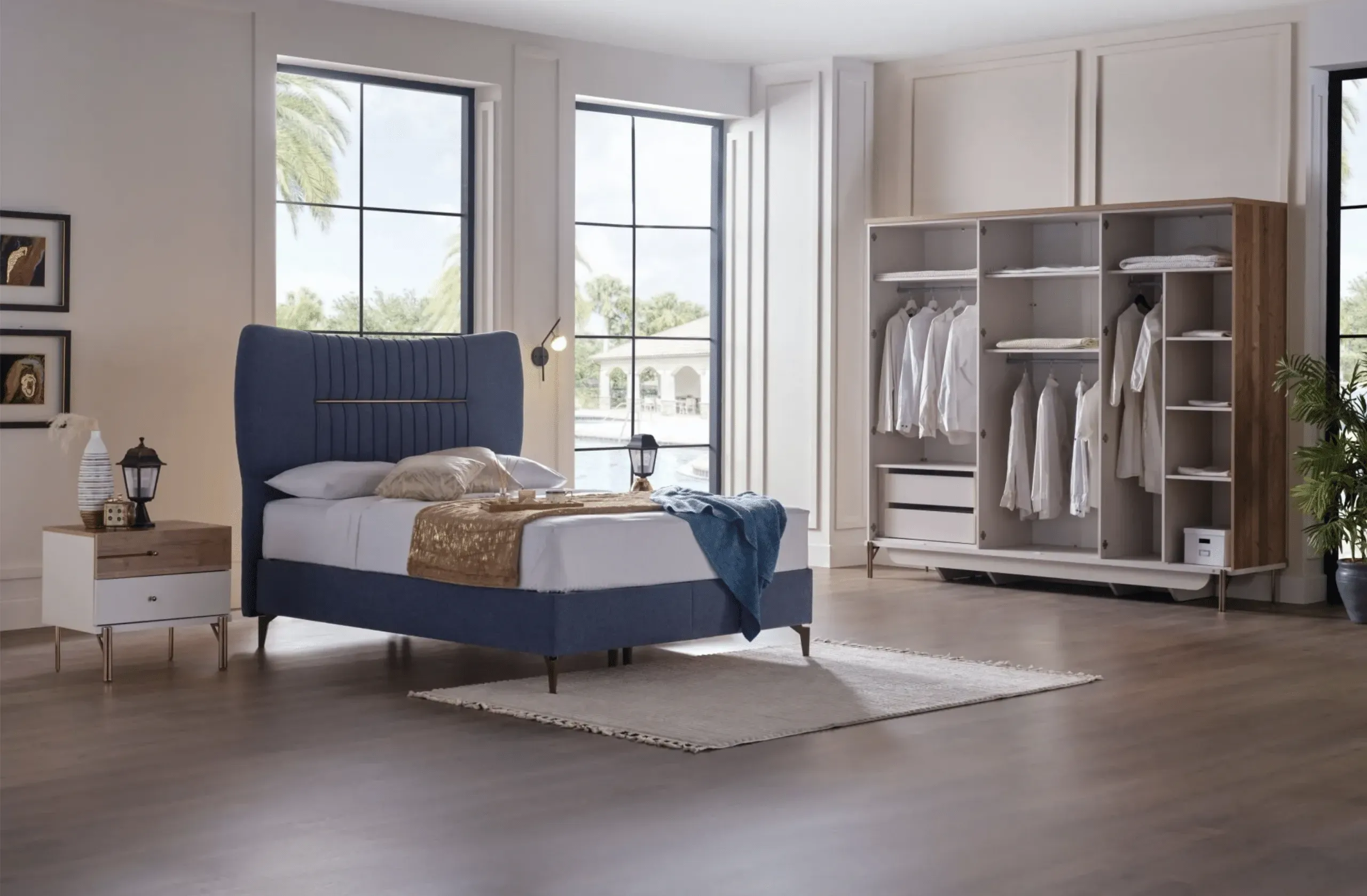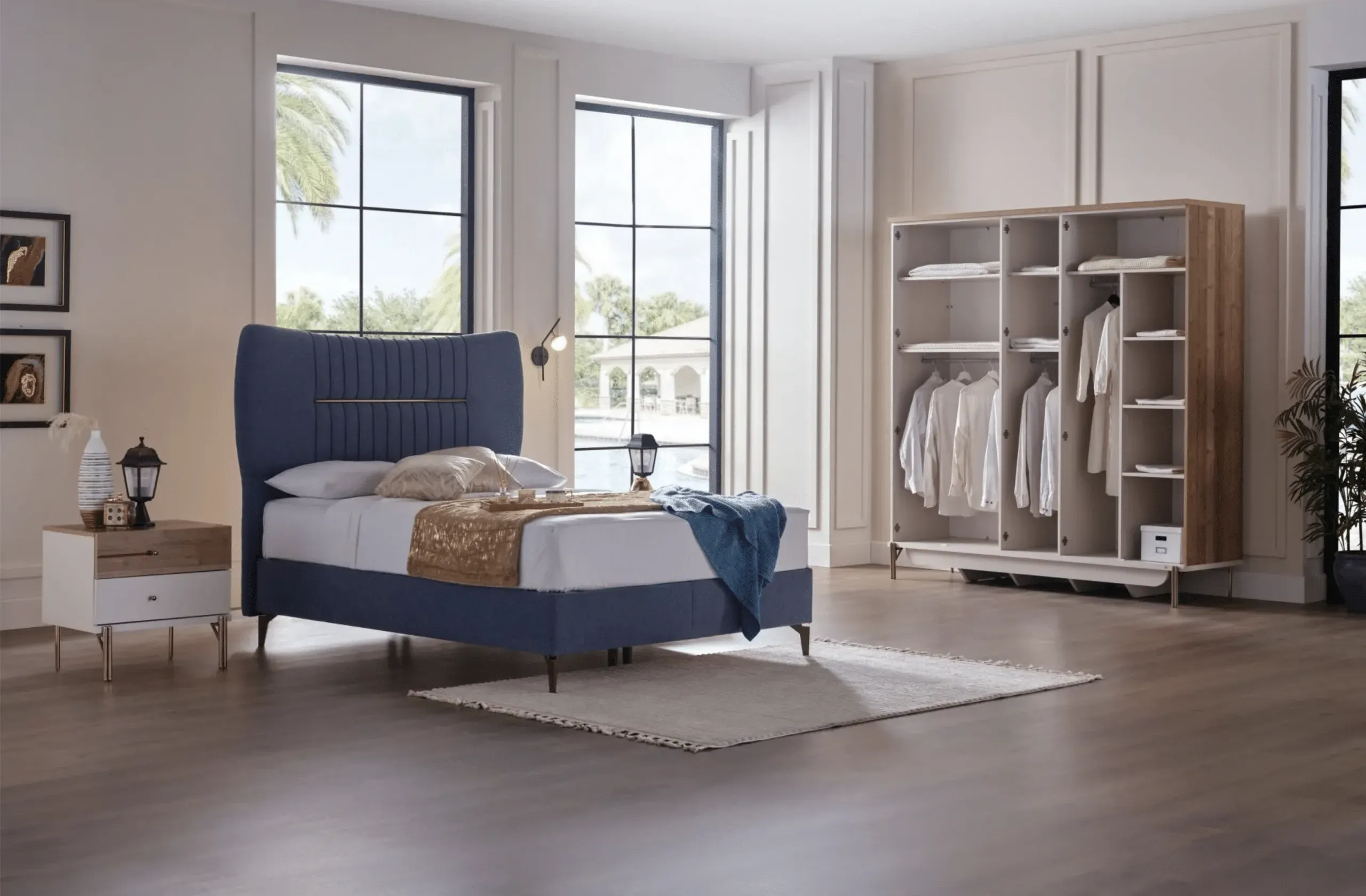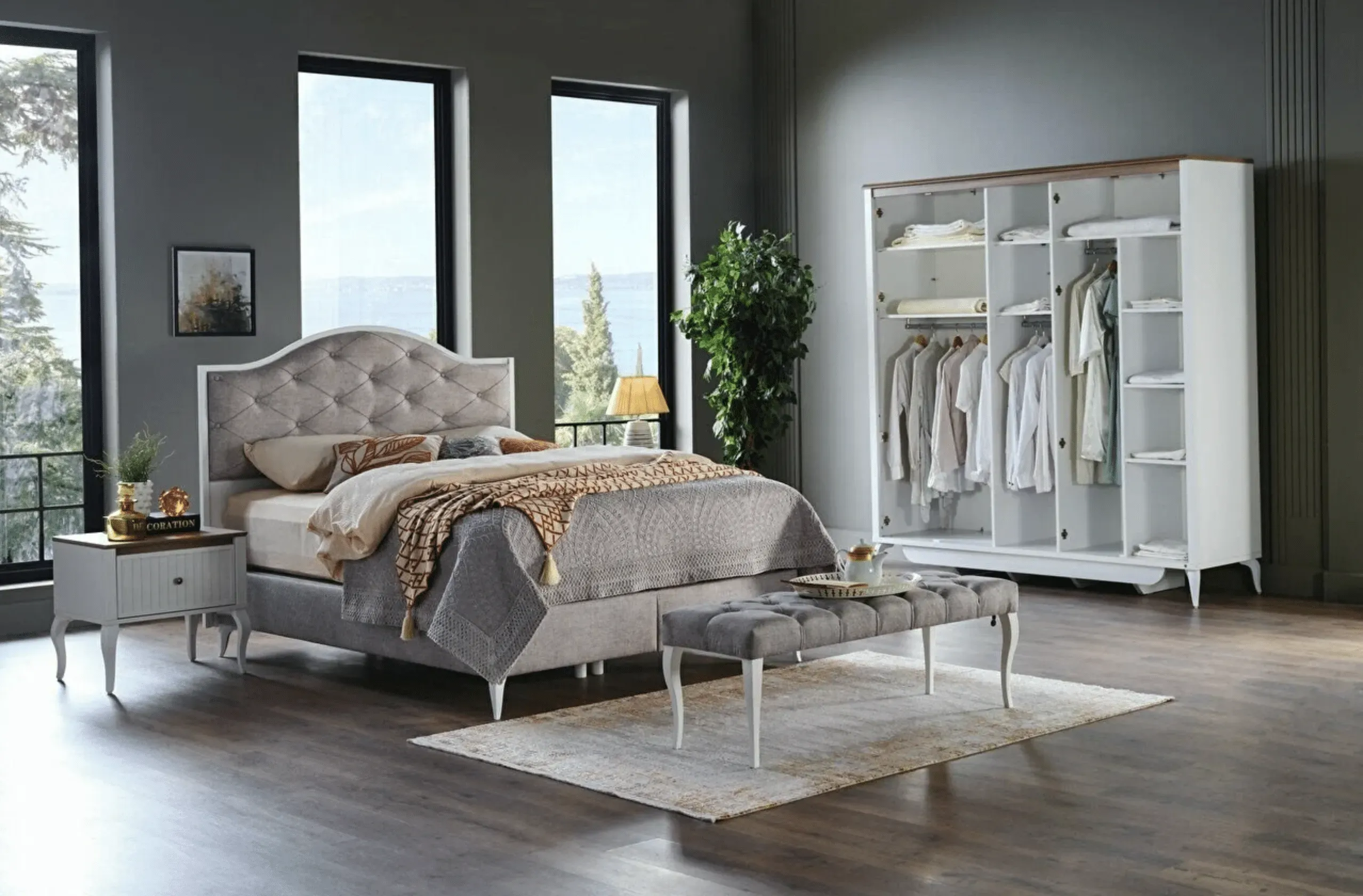 ئەم سێتی ژووری نووستنانە، ڕێگەچارەیەکی کەشخە، ئاسوودە و پراکتیکییە بۆ سەروسەلیقە جیاوازەکان و یارمەتیتان دەدات ژووری نووستنێکی ڕێکوپێک، سەرنجڕاکێش و دڵنشین دروست بکەن.