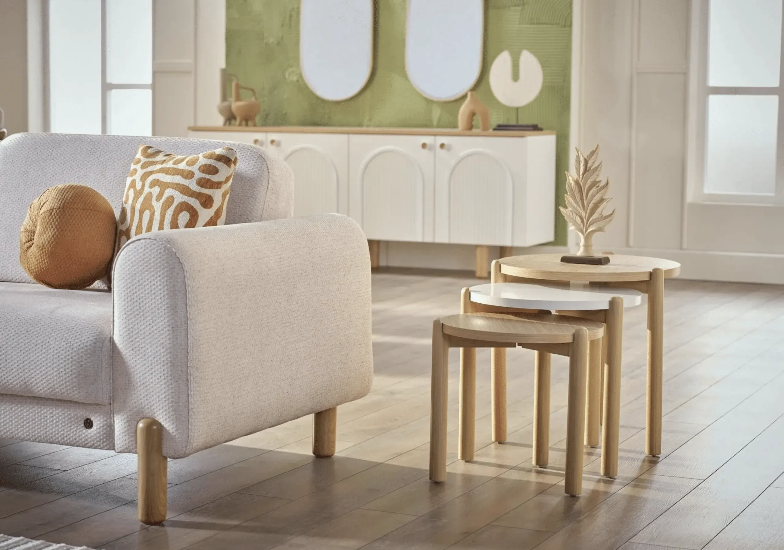 مێزی یەک لە ناو یەکی بوهێمی تێکەڵەیەک لە جوانی، سادەیی و داهێنانە کە بە ئاسانی لە کەشە جیاوازەکاندا دەتوانرێت بە کار بهێنرێت. ئەم مێزانە بە دیزاینی یەک لە ناو یەکی خۆیان، هەم شوێنێکی کەم داگیر دەکەن و هەم کاراییەکی زۆریان هەیە.