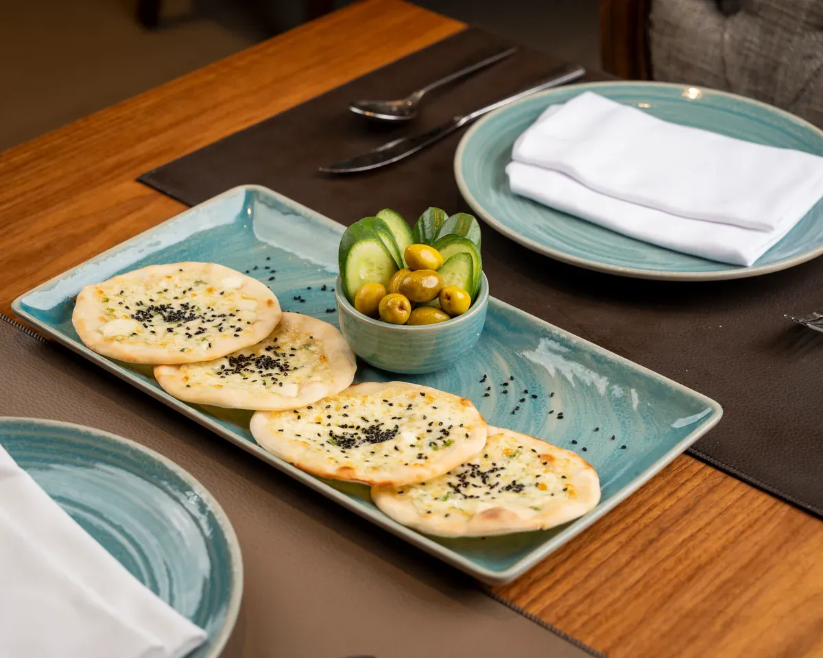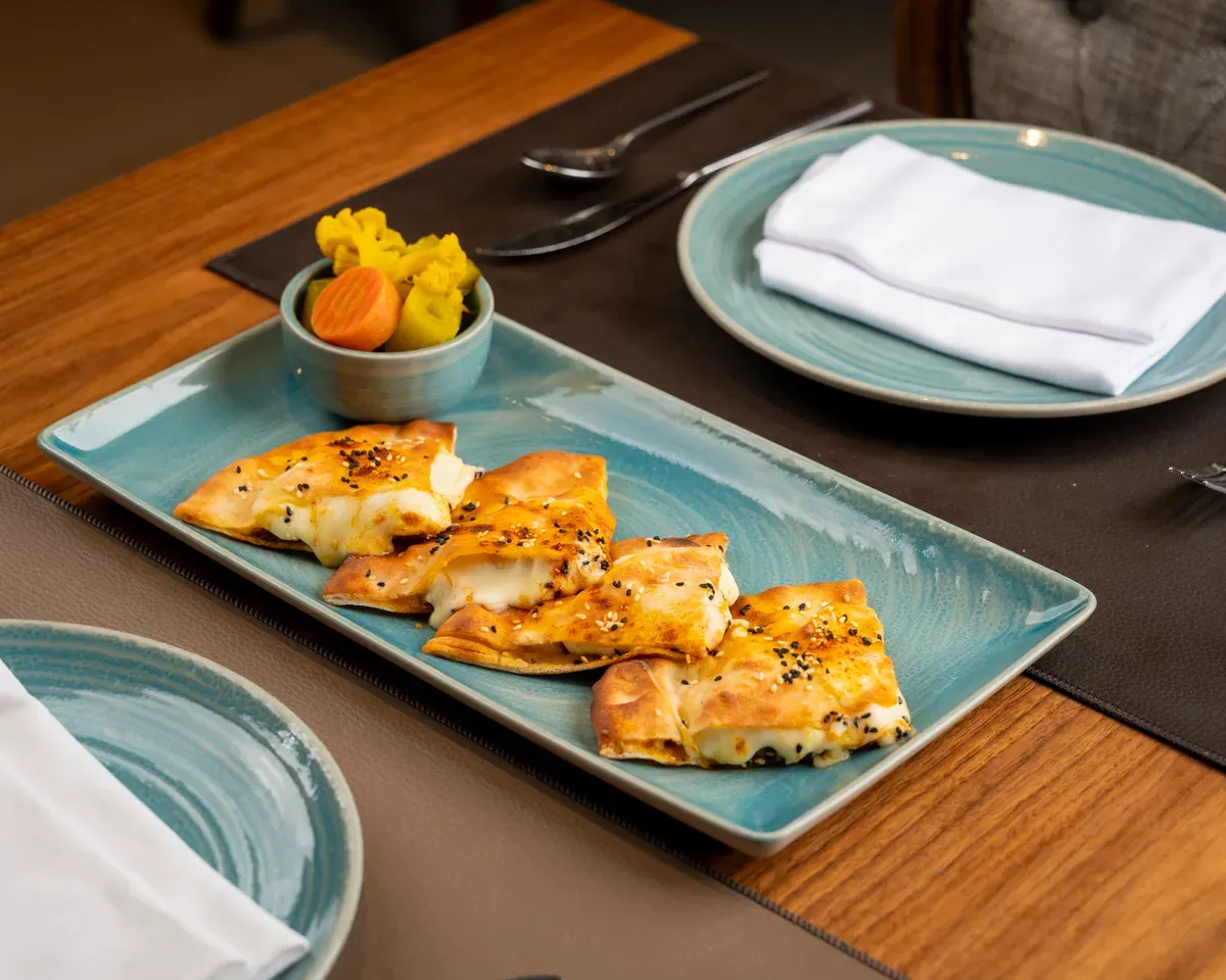 هەویرێکی ڕۆژهەڵاتی پڕکراوە لە soujok ,پەنیر , کوڵاو پێشکەش دەکرێت لەگەڵ ترشیاتی تێکەڵ