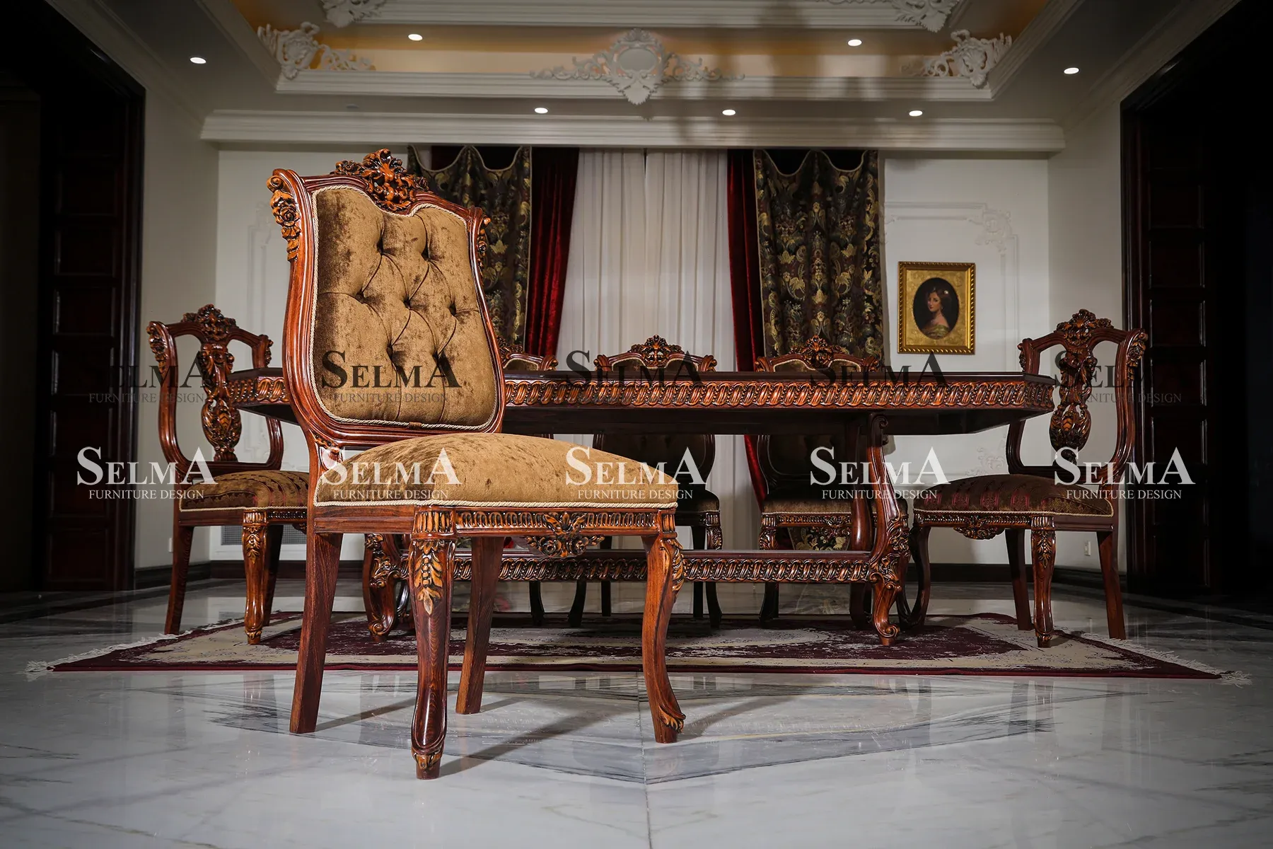 کورسی مێزی نانخواردنی ڕایان بە موعەڕەقکاریی ناسک و بەکارهێنانی کەڤەری داری هاوردەکراوی کوالیتیبەرز دیزاین کراوە و لە دوو قەبەری ٦ کەسی و ٨ کەسیدا دەتوانرێت داوا بکرێت. لە مۆدێلی ٨ کەسیدا، دوو دانە لە کورسییەکان شانشینن بە دیزاینی چیپەندەل و دیمەنێکی تایبەت و فەرمی بە فەزای شوێنی نانخواردن دەبەخشن. هەموو کورسییەکان پشتییەکی ئەرگۆنۆمییان هەیە کە دانیشتنێکی ئاسوودە فەراهەم دەکات.