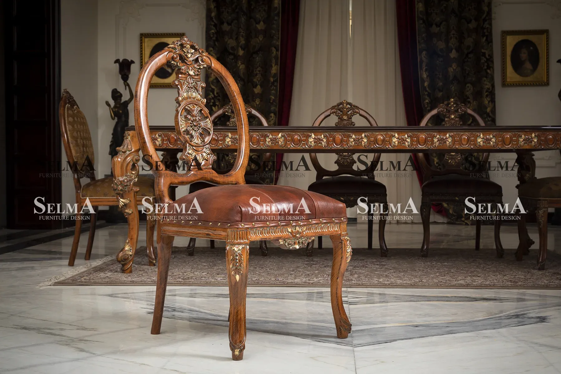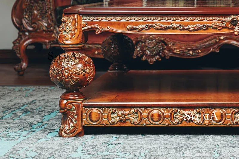 تاقم قەنەفە و کورسی ومێزی نانخواردنی ئاماندا بە دیزاینێکی شاهانە، نەخشاندنی ناسک و ڕەنگی گوێزیی عەنتیکە، دیمەنێکی هەماهەنگ و لووکس دەبەخشێت بە هۆڵی دانیشتن و شوێنی نانخواردن. دانیشتنی ئاسوودە، نەخشاندنی هونەرمەندانە و بەکارهێنانی کورسیی چیپەندەل، وای کردووە ئەم کۆمەڵەیە ببێت بەهەڵبژاردەیەکی شیک و هەرمان بۆ کەشە فەرمییەکان.