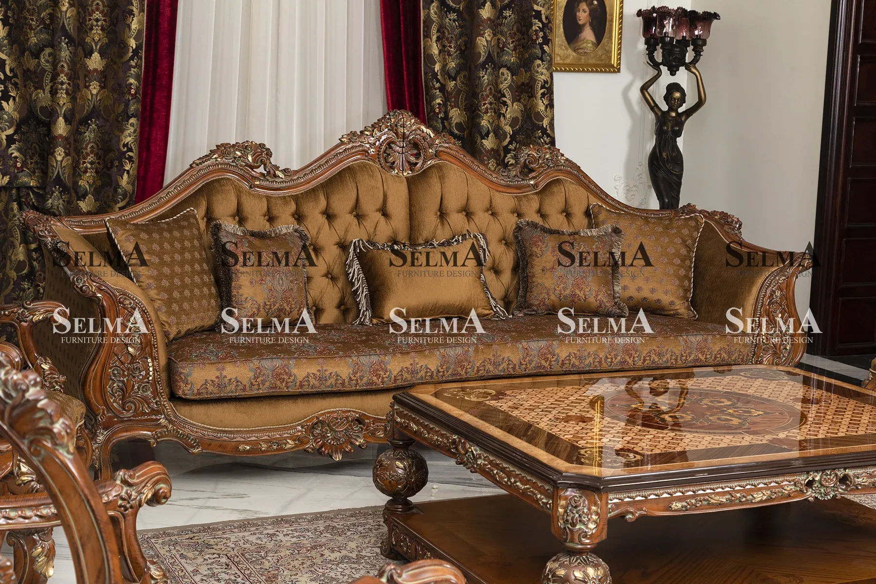 تاقم قەنەفەی ئاماندا یەکێکە لە مۆدێلە تایبەت و پڕفرۆشەکانی مۆبیلیاتی سەڵتەنەتی کە بە دیزاینی پڕوردەکاری، ڕەنگی گوێزیی عەنتیکە و دانیشتنی ئاسوودە، دیمەنێکی لووکس دەبەخشێت بە هۆڵی دانیشتن. ئەم تاقمە بۆ ئەو کەسانە دیزاین کراوە کە گرنگییەکی زۆر دەدەن بە جوانیی کلاسیک لەگەڵ ئاسوودەیی.