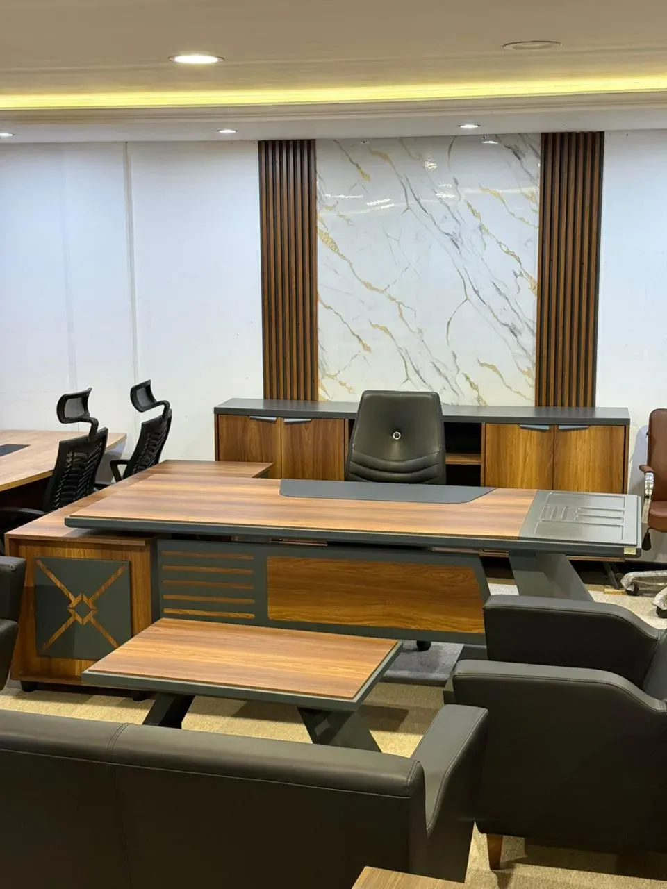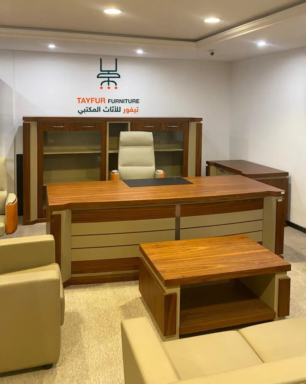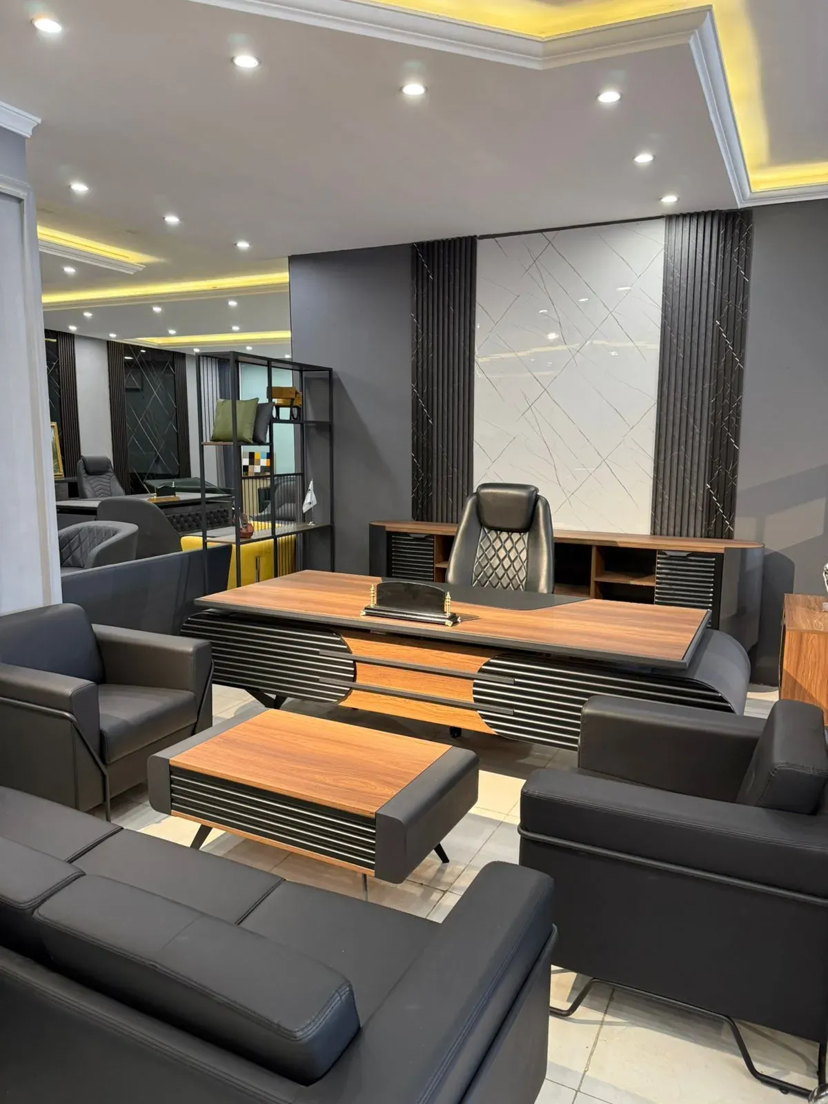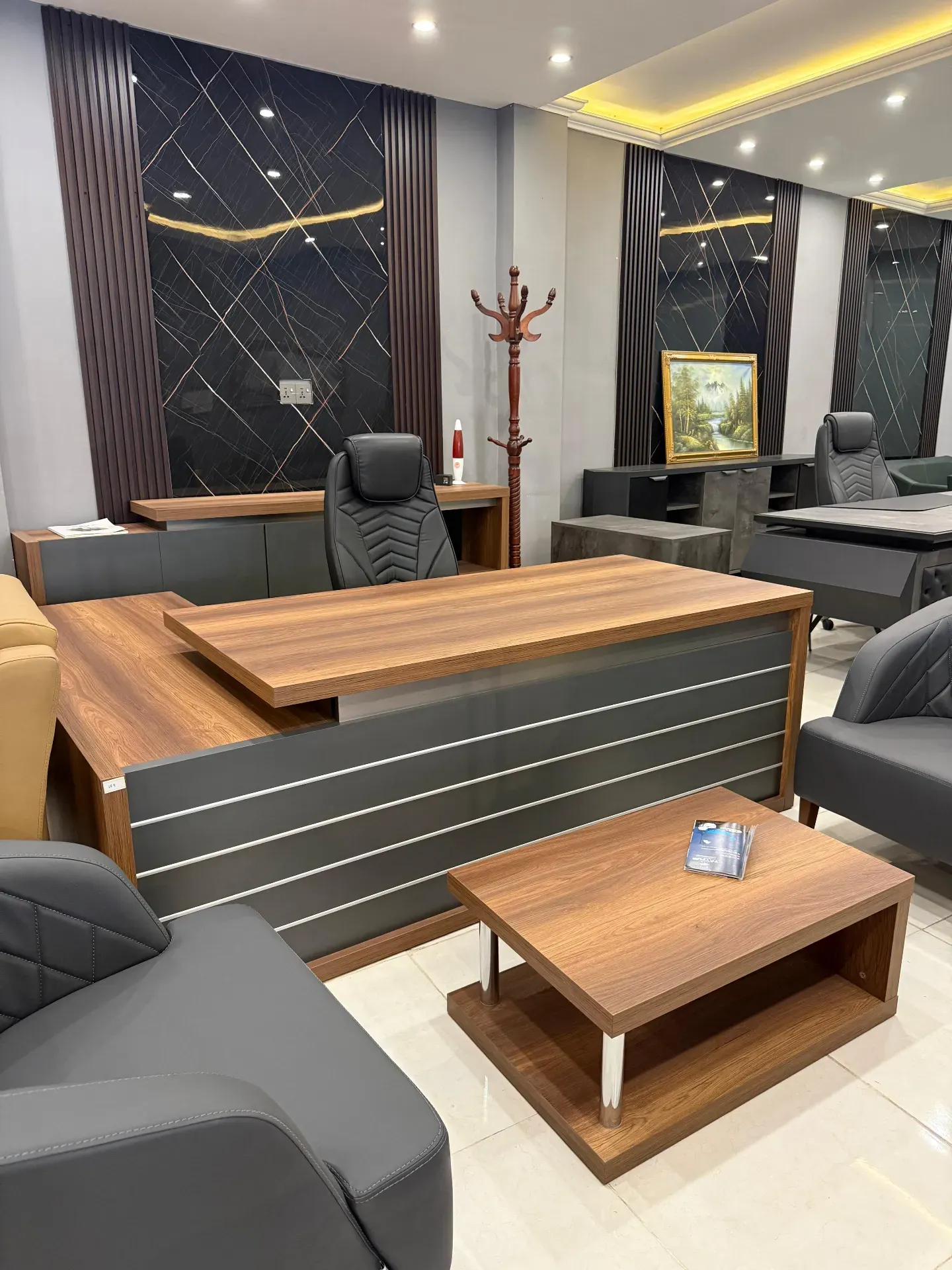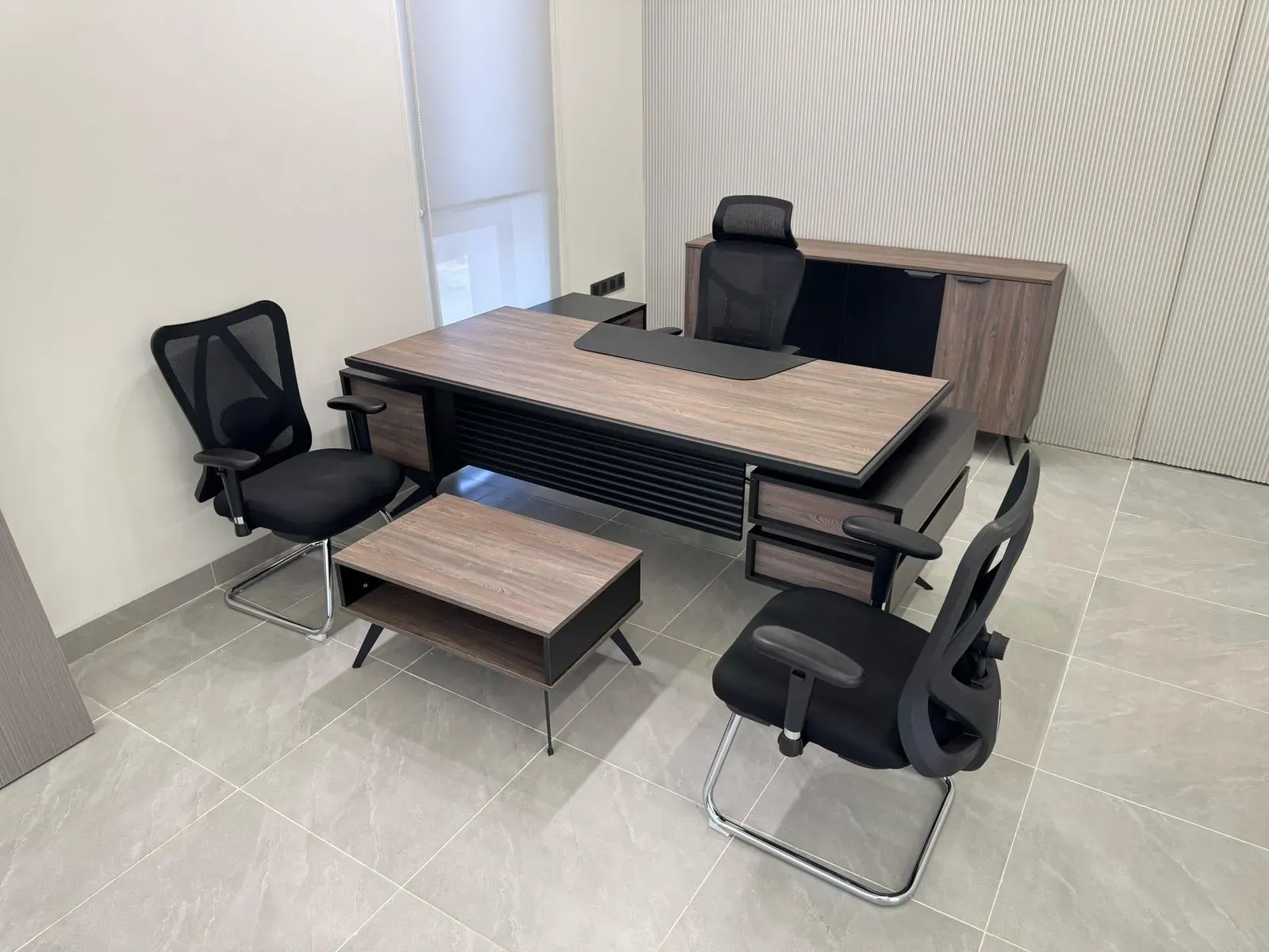 تێکەڵەی ڕەنگە قاوەییە گەرمەکان لەگەڵ هێڵە پاک و قەبارەی بەهێز، هەستی دەسەڵاتی جێبەجێکاری بەهێز دەکات. ئەم مێزە بە ئاسانی لەگەڵ کورسی جێبەجێکاری چەرمی، کتێبخانەی ئۆفیس و یەکەی فایلکردن تەنسیق دەکرێت، کە ناسنامەیەکی یەکگرتوو و پیشەیی بە شوێنەکە دەبەخشێت.