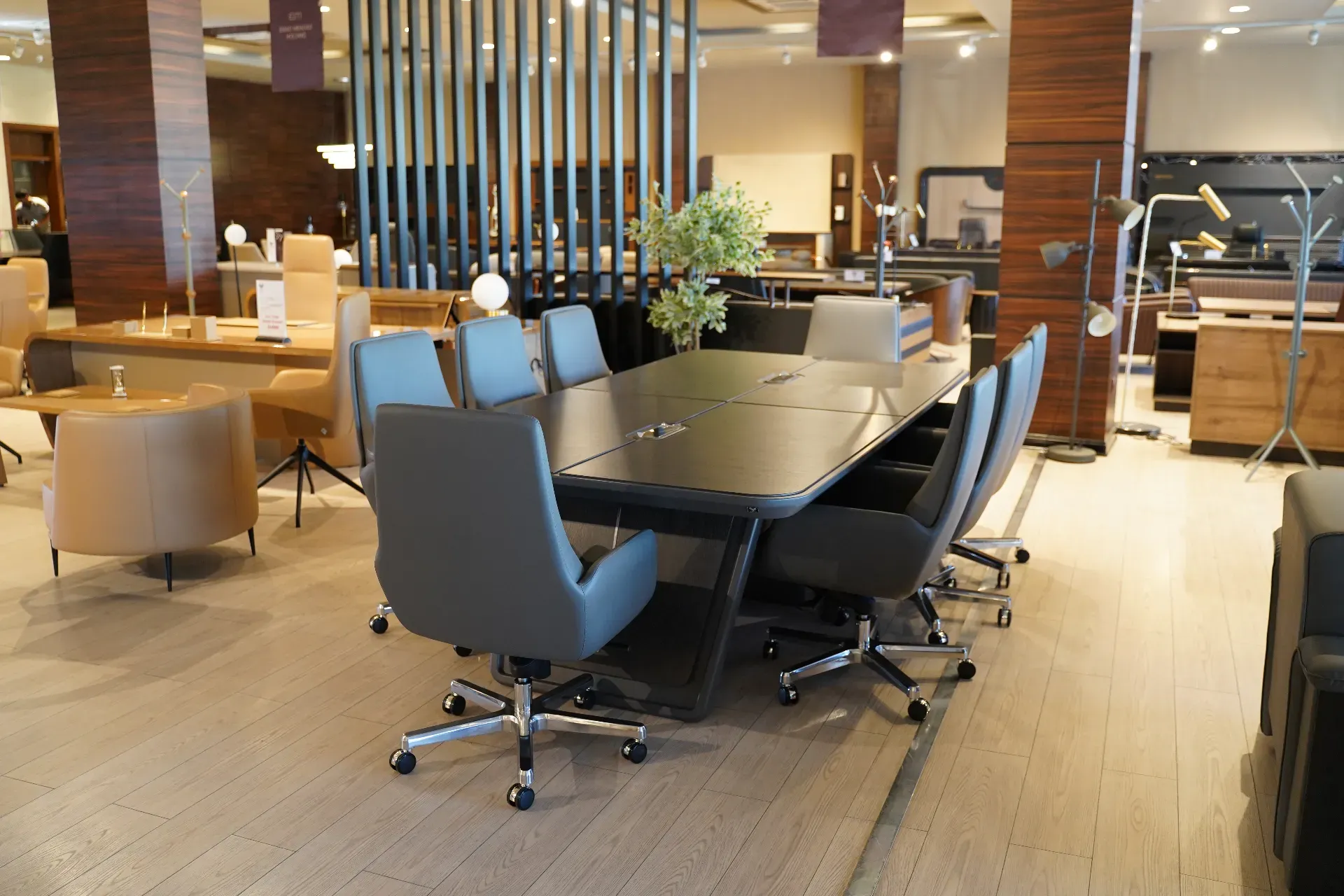 مێزێکی کۆبوونەوەی شیک و ڕێکوپێک کە بۆ کۆکردنەوەی ئەندامانی تیم بە ئەم تایبەتمەندییانە دیزاین کراوە: