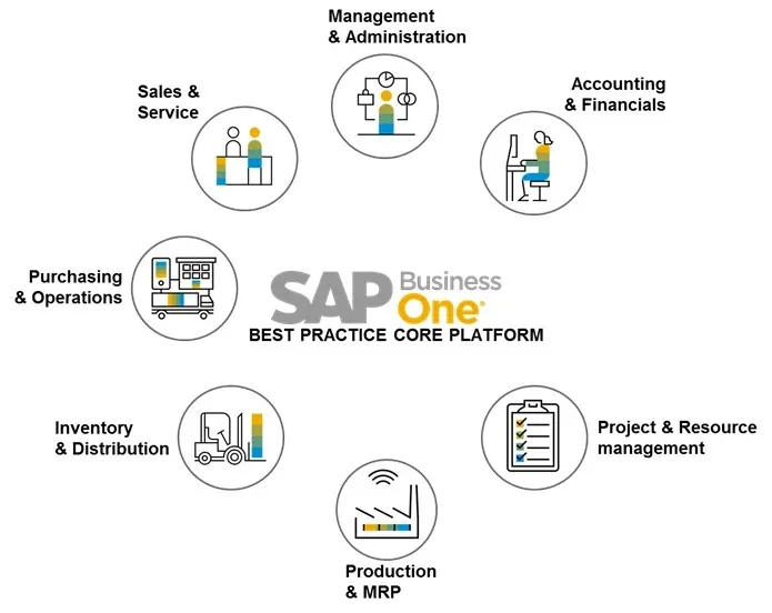 SAP Business One состоит из множества функциональных модулей, которые охватывают все ключевые процессы организаций. Некоторые из самых важных модулей включают: