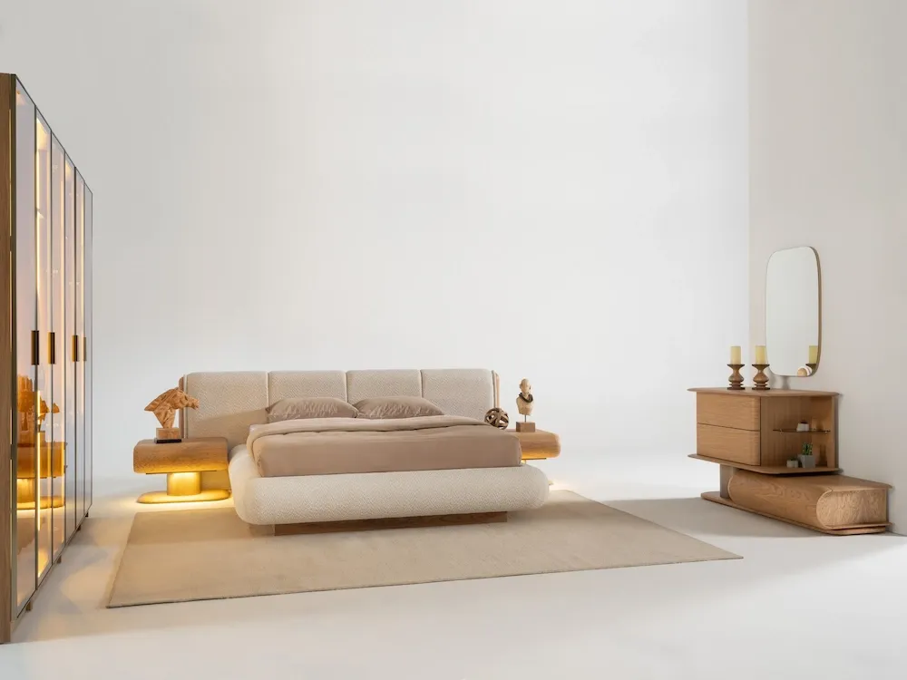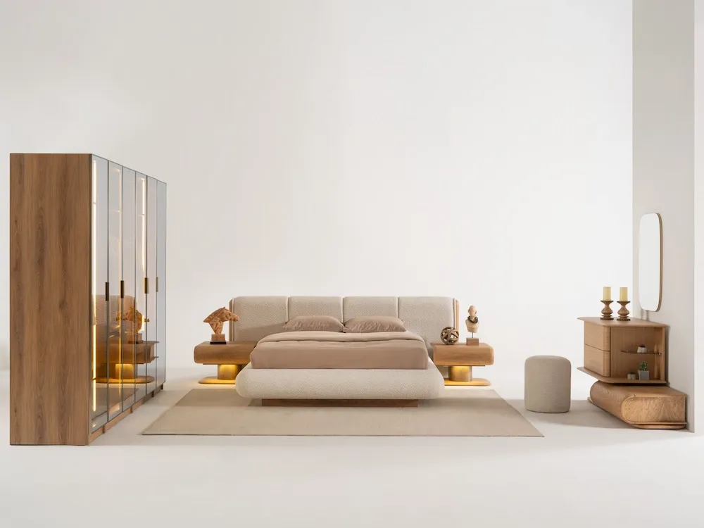 Doğadan ilham alan Natura Model yatak odası takımı, huzurla birleşen lükse değer verenler için ideal bir seçimdir. Uyumlu tasarımı ve zarif detayları ile bu yatak odası takımı, günlük dinlenme için sıcak ve davetkar bir alan sunar.