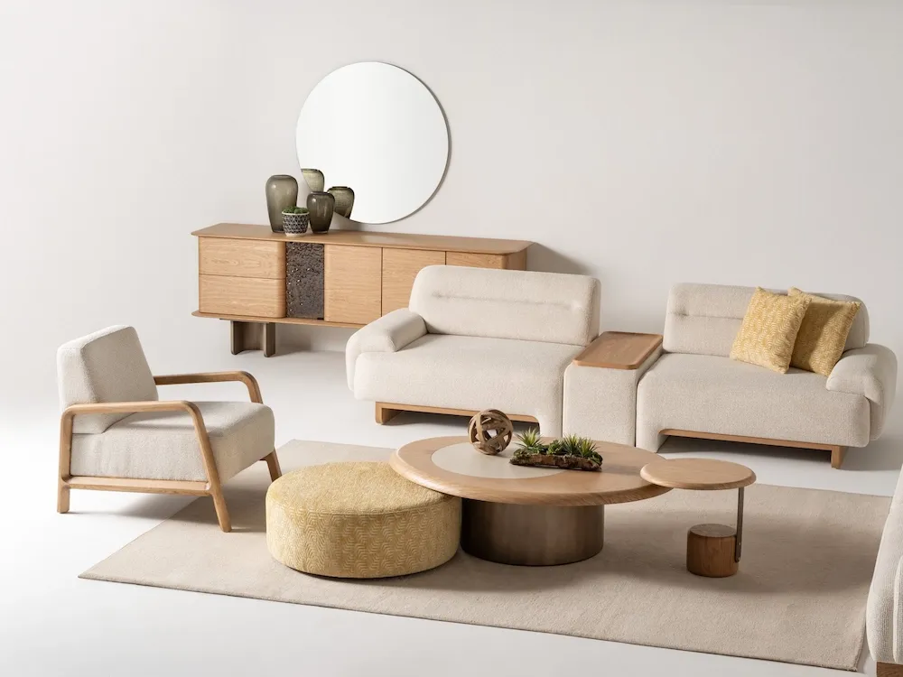 Natura kanepe modeli, doğadan ve yumuşak hatlardan ilham alınarak tasarlanmıştır. Natura modülü, kanepenin gövdesine sorunsuz bir şekilde entegre edilmiş olup, doğal dokular kullanılarak kullanıcı için daha işlevsel bir alan sağlar.