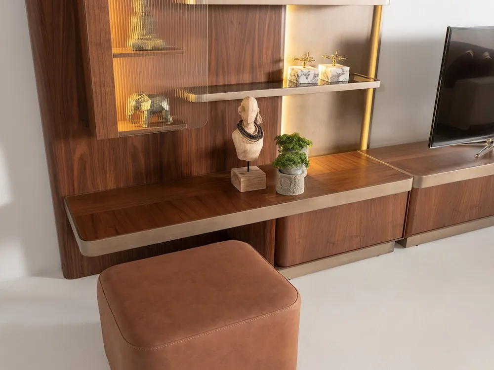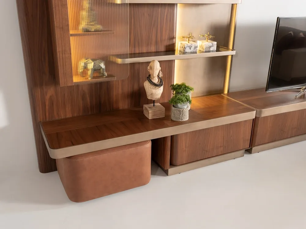 Ava TV ünitesinin yapımında yüksek kaliteli malzemelerin kullanılması, günlük kullanımda yüksek dayanıklılık ve doğru performans sağlar. Bu ünitenin işlevsel alanı, aksesuarların düzenli bir şekilde yerleştirilmesini kolaylaştırır ve organize bir ortamın korunmasına yardımcı olur.