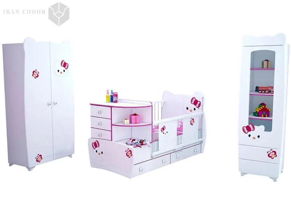 Kitty bebek odası takımı, çizgi roman tarzı tasarımıyla çocuğunuzun odasına neşe ve canlılık katıyor. Kitty bebek ve genç yatağı, genç yatağa dönüştürülebilir ve hareketli korkuluklara sahiptir. Bu yatakta birçok çekmece ve saklama kutusu bulunarak çeşitli eşyalar için bolca depolama alanı sunar.