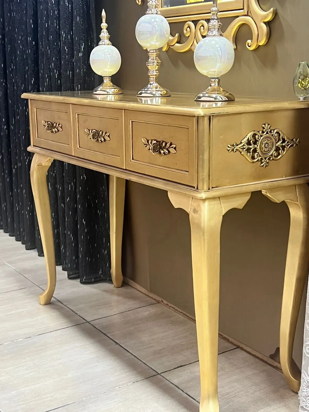 Bu konsolun pürüzsüz ve parlak yüzeyi, orantılı formu ve pratik çekmeceleri, güzelliğinin yanı sıra dekoratif ve günlük eşyaları düzenleme imkanı sunar. Bu ayna ve konsol takımı, sadece evin girişi veya oturma odası için çarpıcı bir dekoratif unsur olmakla kalmaz, aynı zamanda arzu edilen yapı kalitesi ve zamansız tasarımıyla iç mekanı zenginleştirmek için akıllıca bir seçimdir.