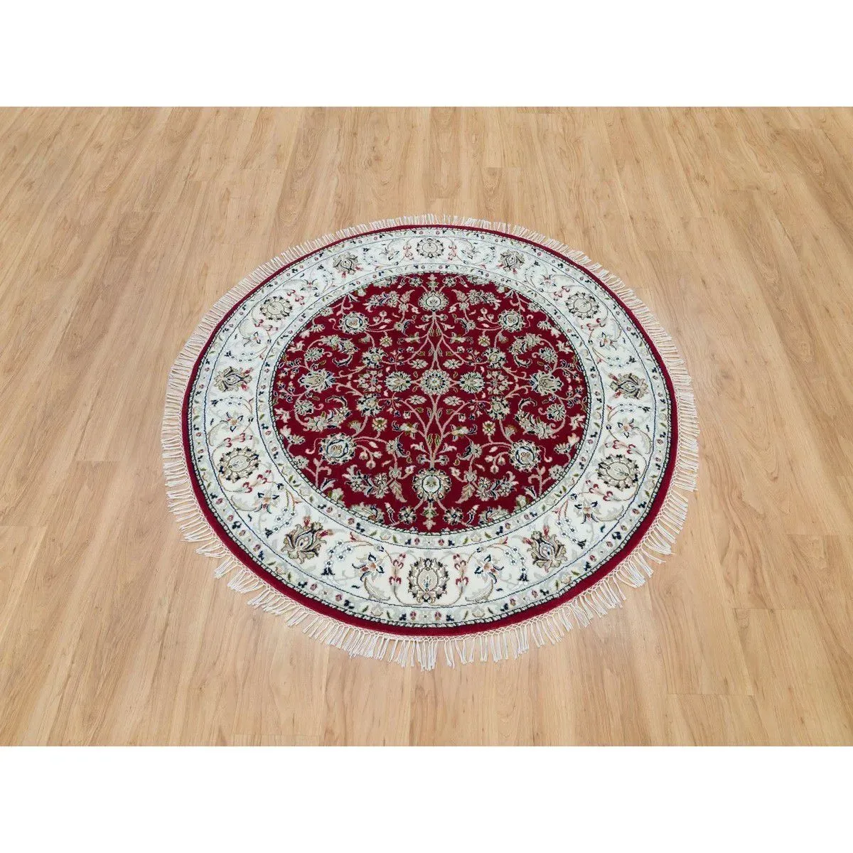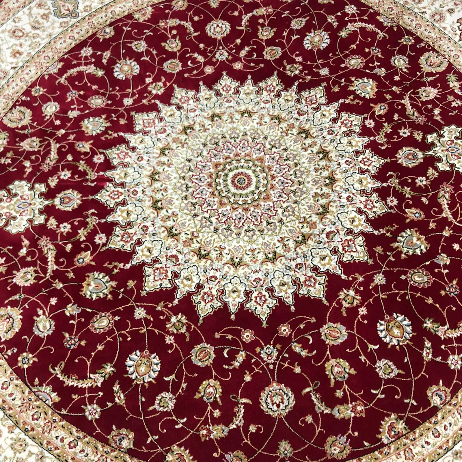 Bu halı, doğal parlaklığı ve "prizmatik" yapısıyla bilinen yüksek kaliteli ipek liflerinden yapılmıştır. Bu özellik, halının renklerinin farklı ışıklar altında güzel bir şekilde değişmesini sağlar.