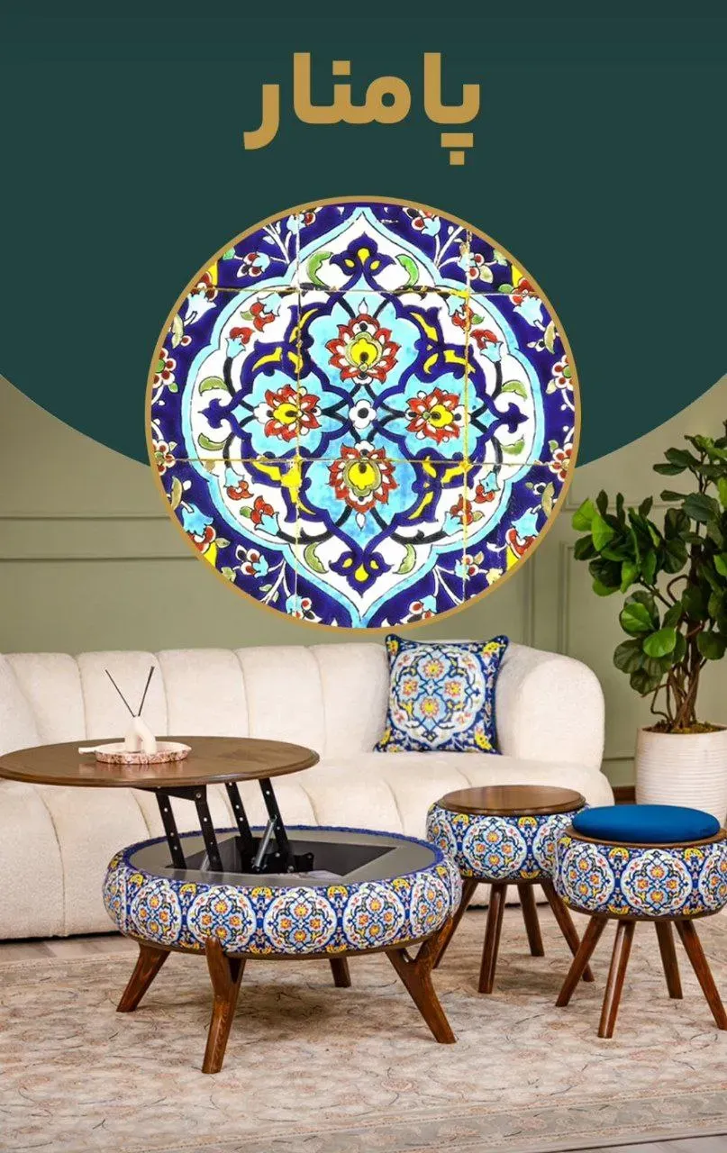 产品由木材与面料组合一体制成,与伊朗传统艺术风格相呼应,深受特定消费群体喜爱,是本系列中颇具特色的产品之一。