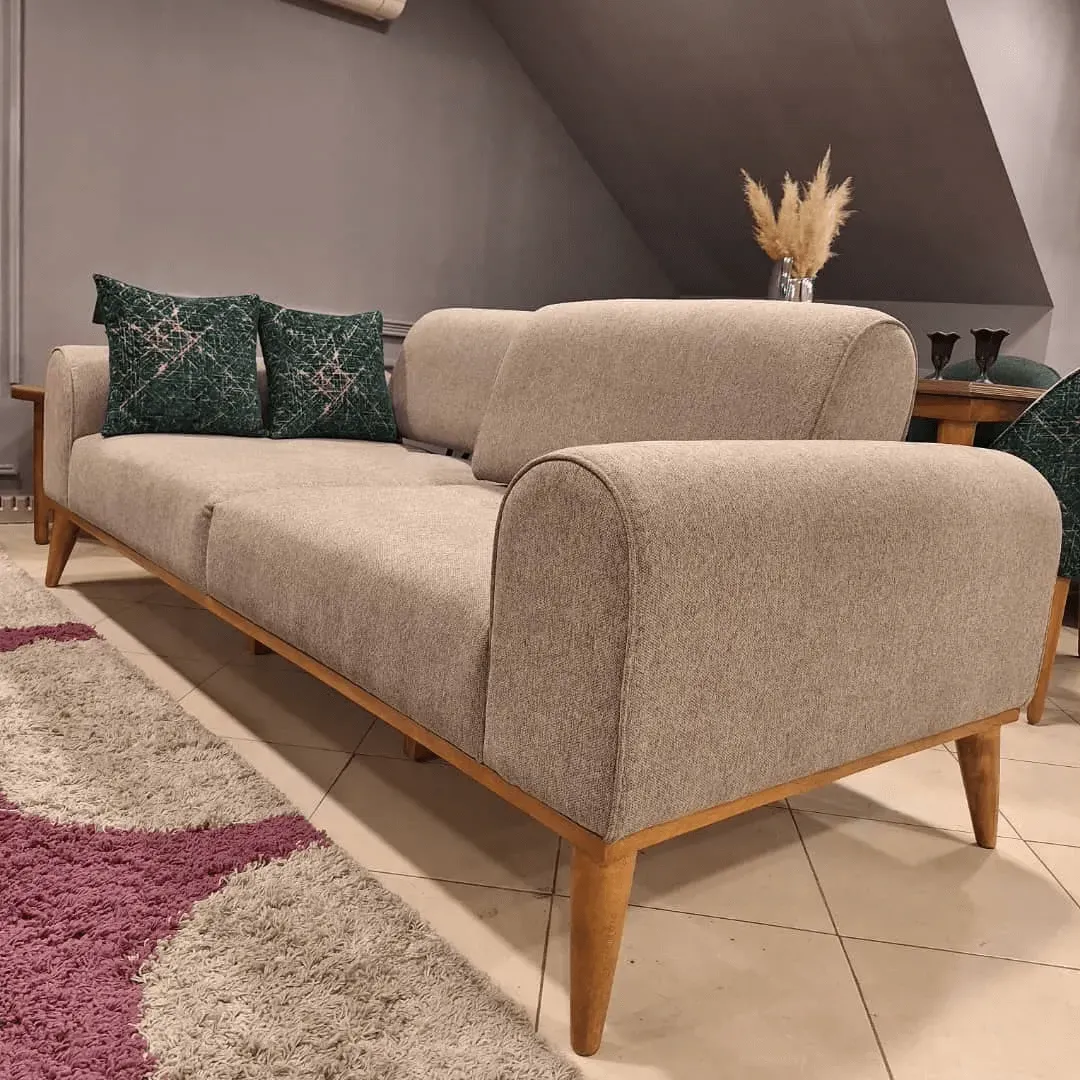 舒适沙发 型号集颜值、耐用性、品质以及合理价格于一身,满足您对沙发的一切期待。此款为 8 人位组合,以 3+3+1+1 的形式提供给您。整套产品所有木质部件(包括主体与沙发腿)均采用俄罗斯木材制作。所有款式的底座和沙发腿均为胡桃棕色。为实现: